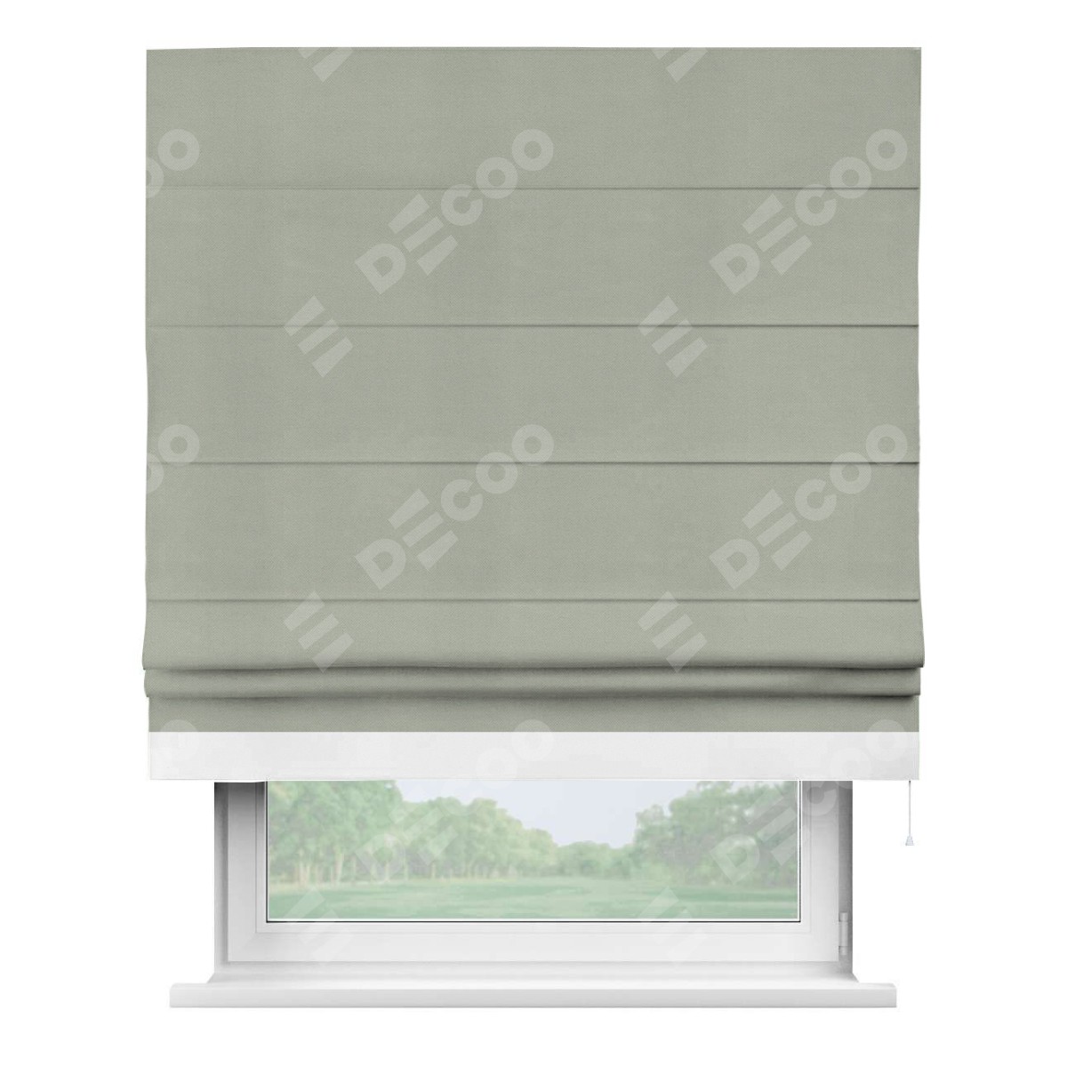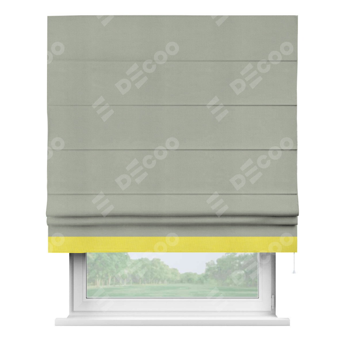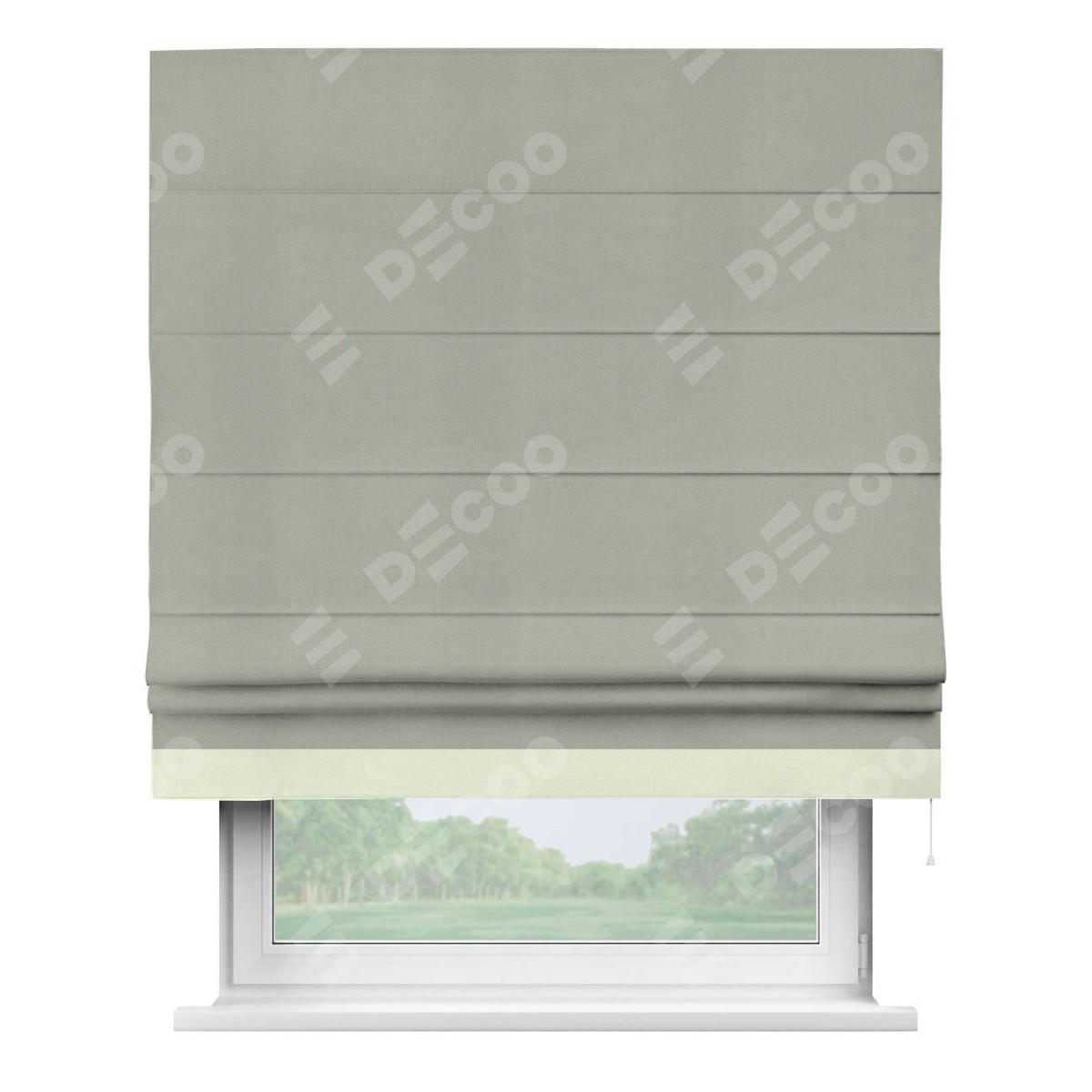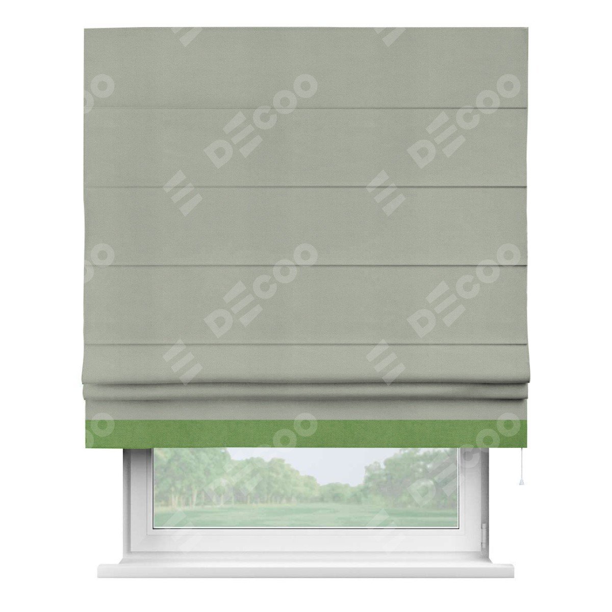 Римская штора производителя «Cortin», используется для проёма, пошита из ткани вельвет светло-серый, артикул ткани 30981. Отделка шторы кантом «Джестер», ткань для канта используется из вельвета разной расцветки на выбор. Имеет универсальный механизм и подходит для монтажа: на потолок, на стену и в нишу.