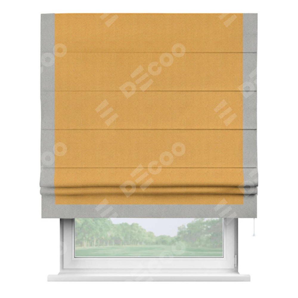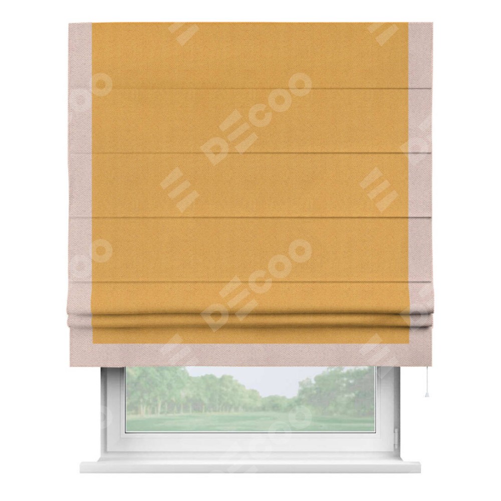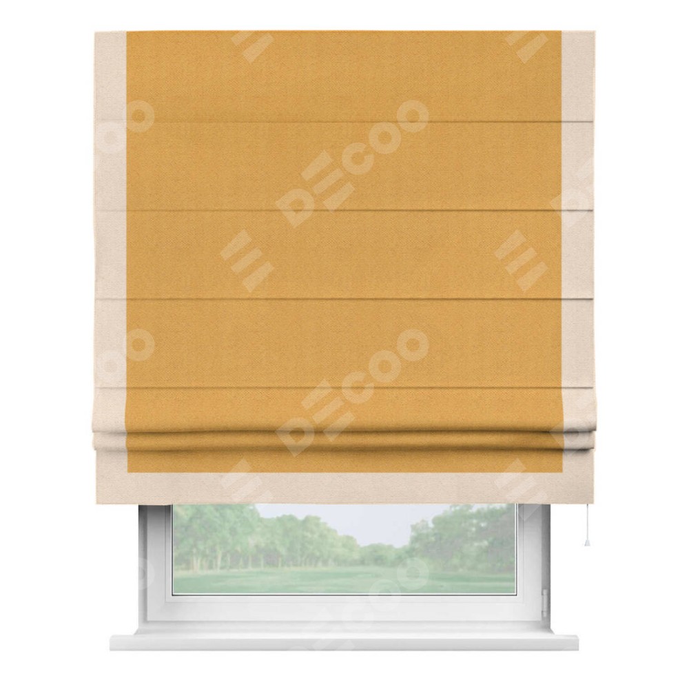Римская штора «Кортин» с кантом Виктория, для проема, ткань блэкаут с блеском золотой