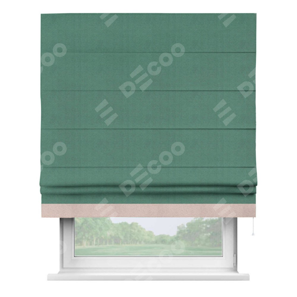 Римская штора «Кортин» с кантом Джестер, для проема, ткань блэкаут с блеском изумрудный