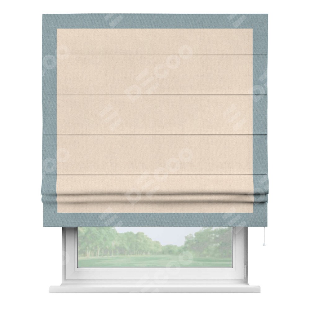 Есть модель римских штор в которой первый слой из плотной ткани, защищающий от яркого солнечного света, а втрой слой из тюля. Тюль в такой модели штор дает легкость и прозрачность помещению. А также защищает от посторонних взглядов и рассеивает не яркий свет.
