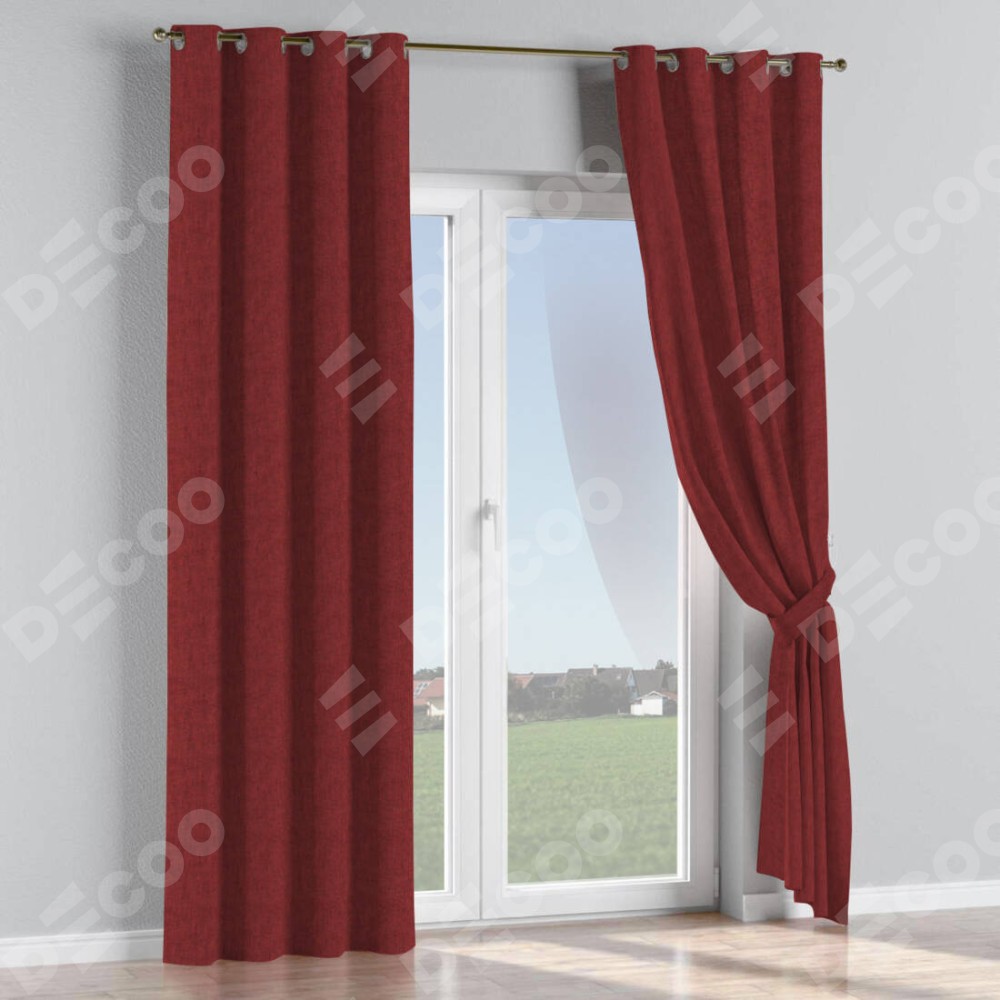 Комплект прямых штор, от производителя «Cortin», пошиты из ткани лён кашемир бордовый, артикул ткани 17213. Данная модель пошита на люверсах, комплектуется на выбор круглым карнизом и подходит для монтажа на стену или потолок. Прямые шторы на люверсах шьются по стандарту с коэффициентом 1/2 (на 100 см. ширины проёма 200 см. ширины ткани), отличительным преимуществом данной модели является простой способ монтажа. Достаточно повесить ее на трубу и штора готова!