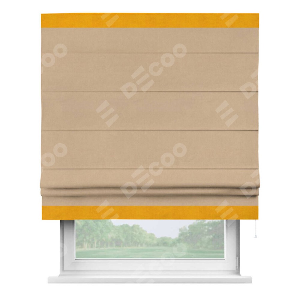 Римская штора «Кортин» с кантом Горизонт, для проема, ткань вельвет песочный
