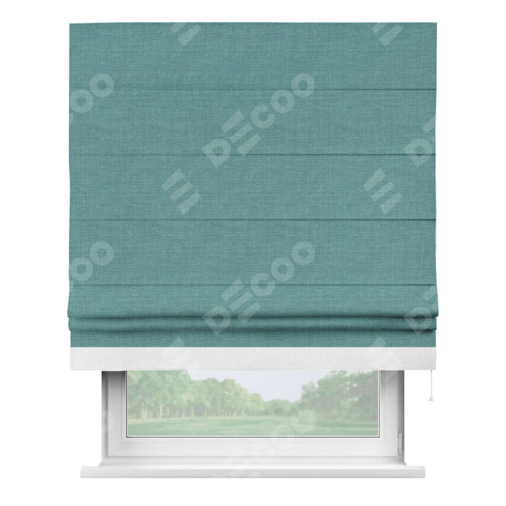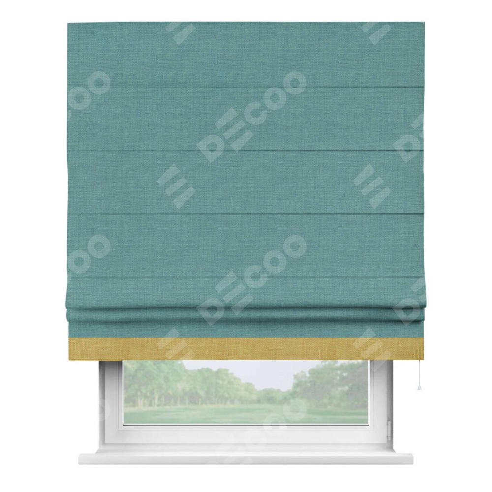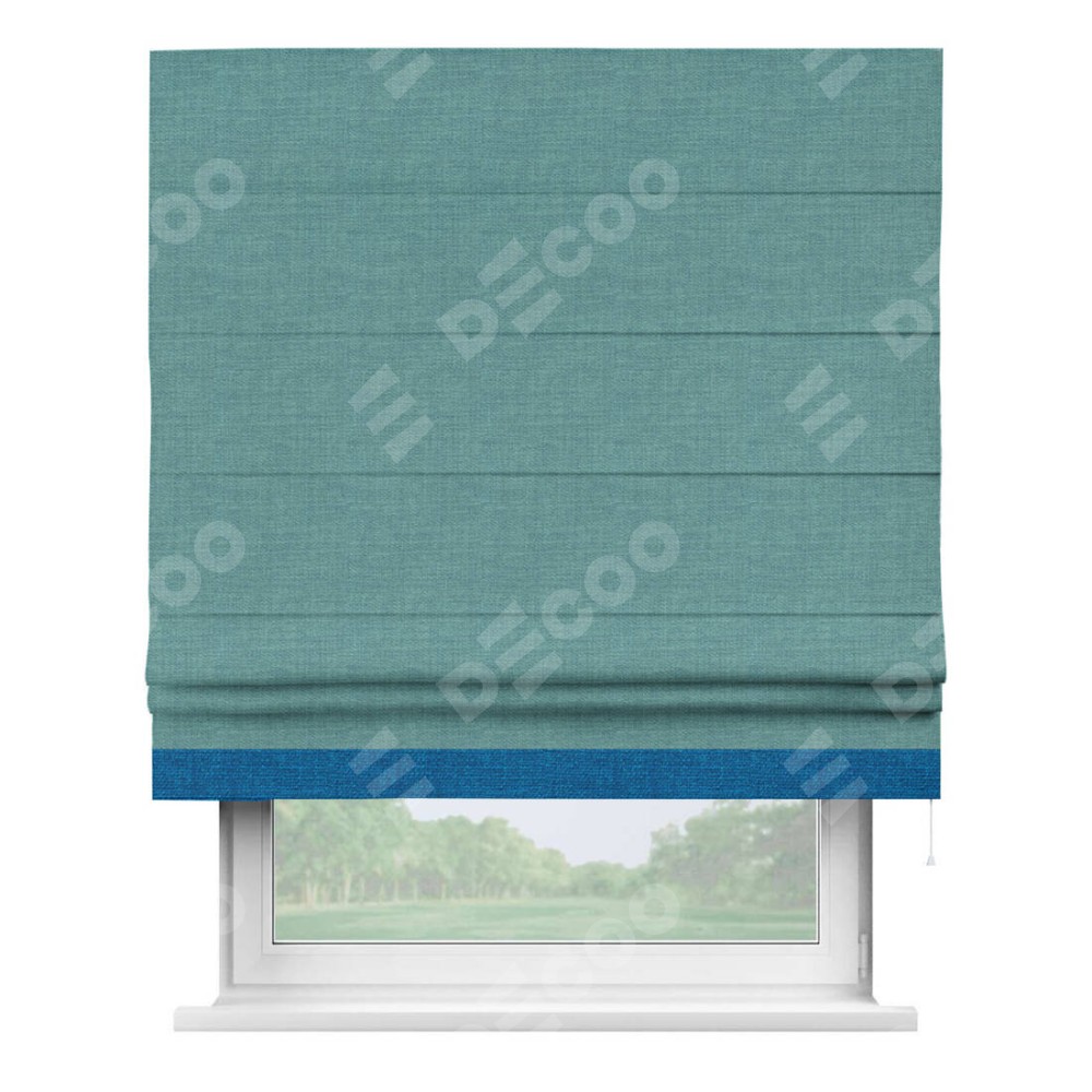 Римская штора «Кортин» с кантом Джестер, для проема, ткань лён бирюза
