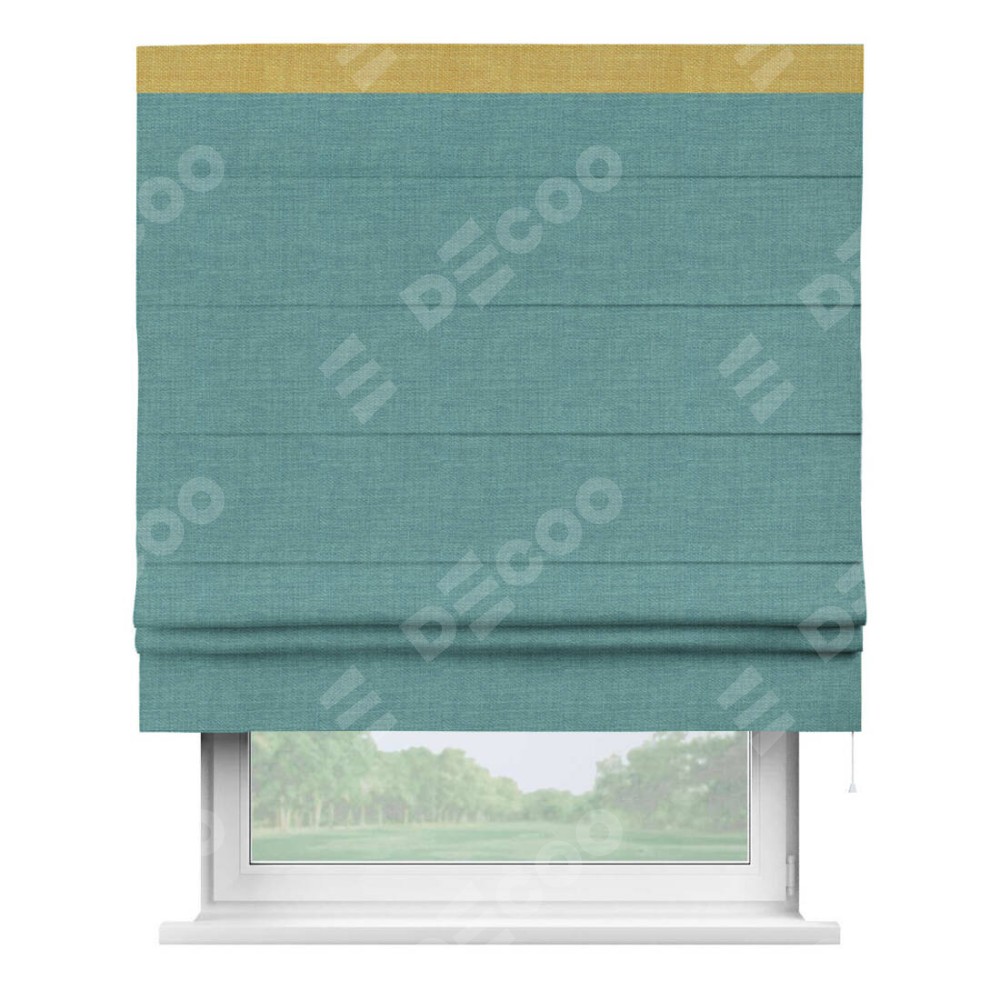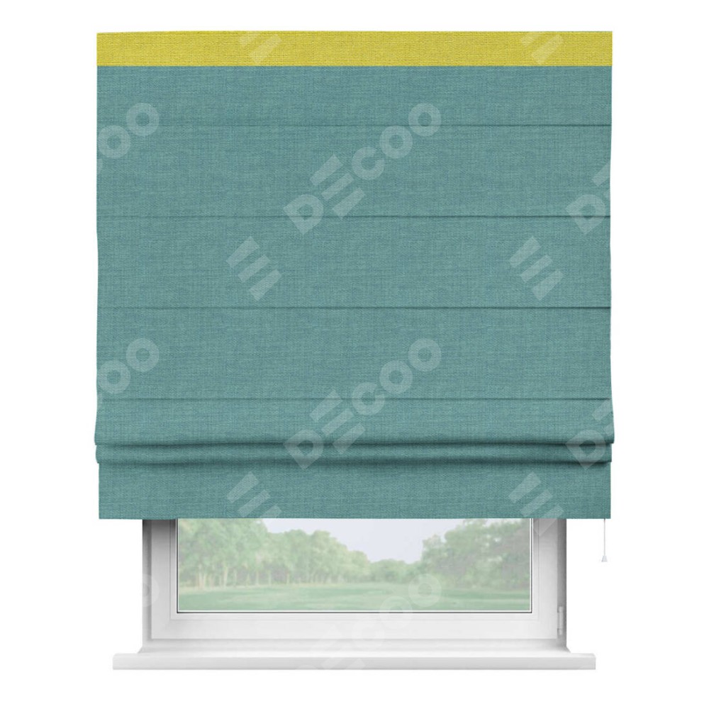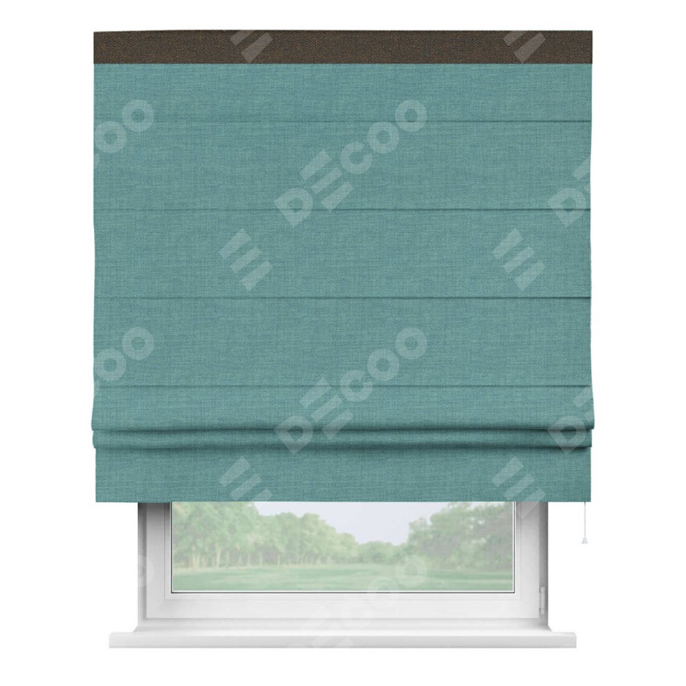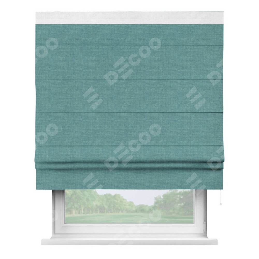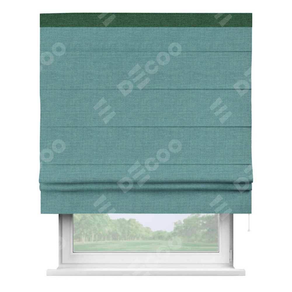 Римская штора «Кортин» с кантом Кинг, для проема, ткань лён бирюза