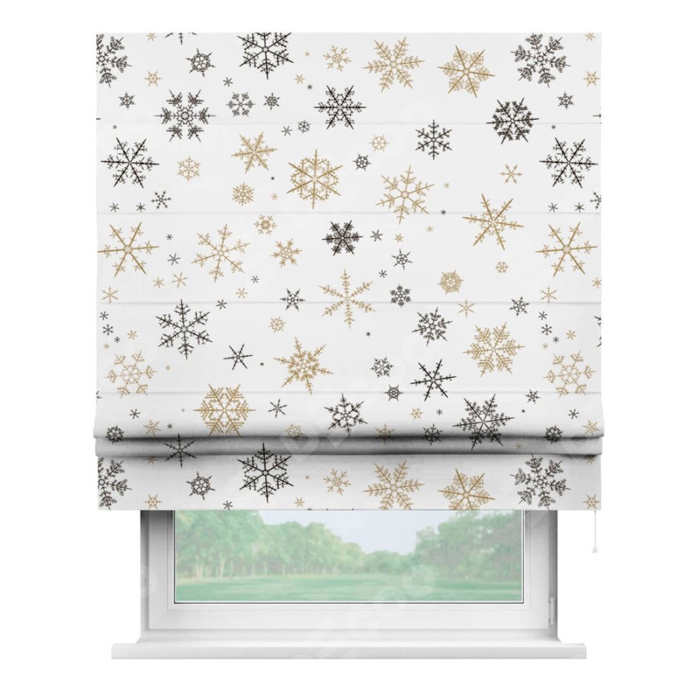 Римская штора производителя «Cortin», используется для проёма, пошита из ткани блэкаут с нанесением сублимационной печати «Зимняя метель». Имеет универсальный механизм и подходит для монтажа: на потолок, на стену и в нишу.