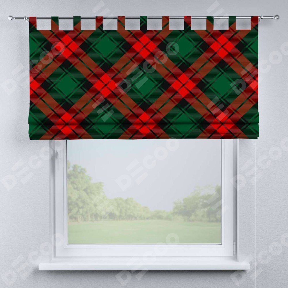 Римская штора производителя «Cortin», используется для проёма, пошита из ткани блэкаут с нанесением сублимационной печати «Красно-зелёная клетка». Данная модель пошита на петлях, комплектуется на выбор круглым карнизом и подходит для монтажа на стену. Римская штора на петлях имеет простую систему регулировки высоты, отличительным преимуществом данной модели является простой способ монтажа. Достаточно повесить ее на трубу и штора готова!