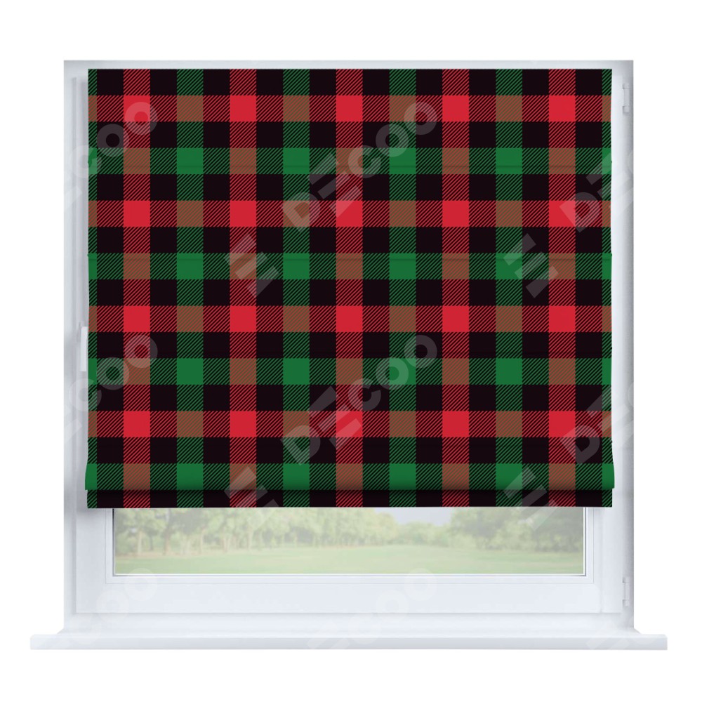 Римская штора производителя «Cortin», устанавливается на створку окна, пошита из ткани блэкаут с нанесением сублимационной печати «Красочная клетка». Штора шьётся по индивидуальным размерам, для данного типа римской шторы возможная ширина от 35 до 150 см., высота до 250 см.