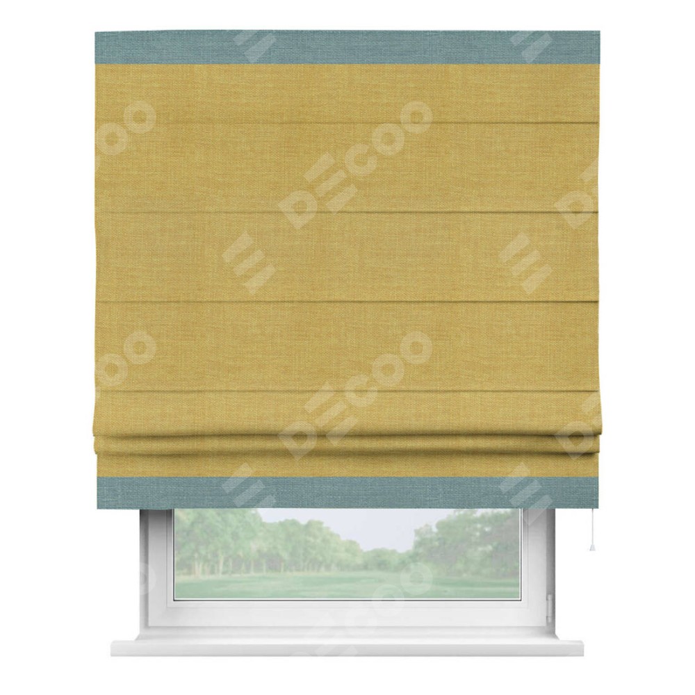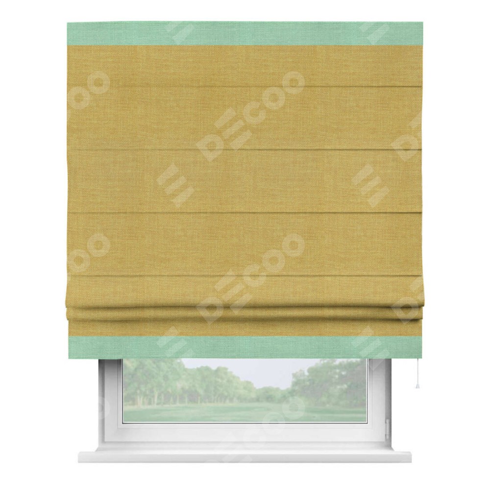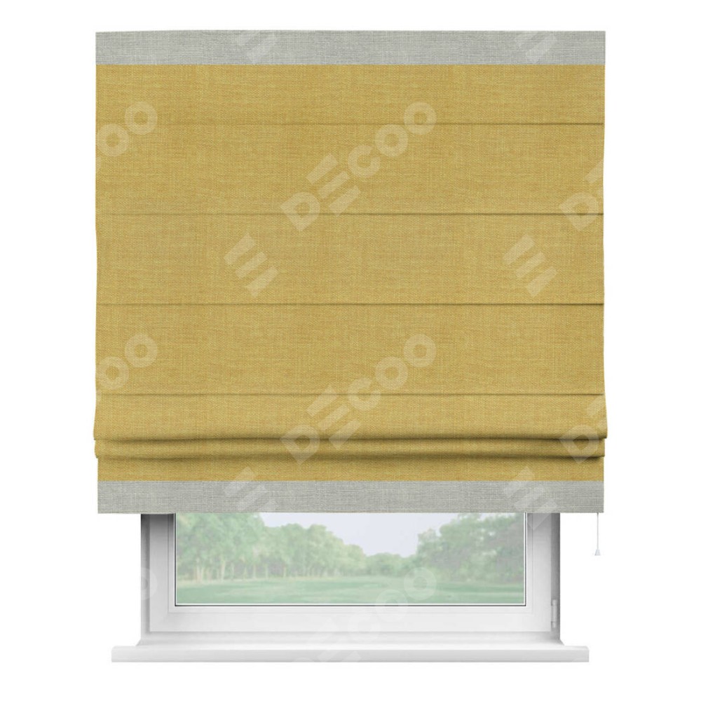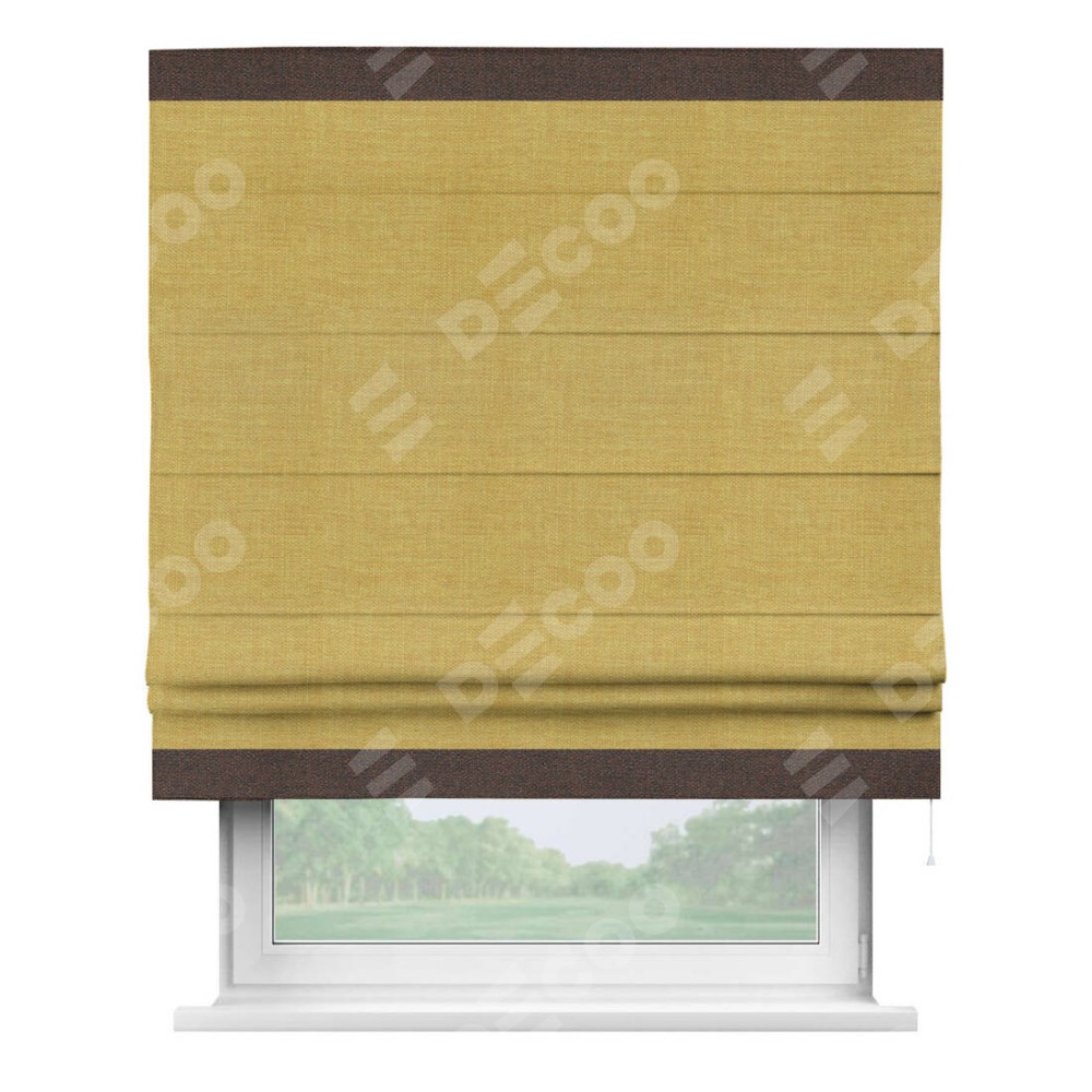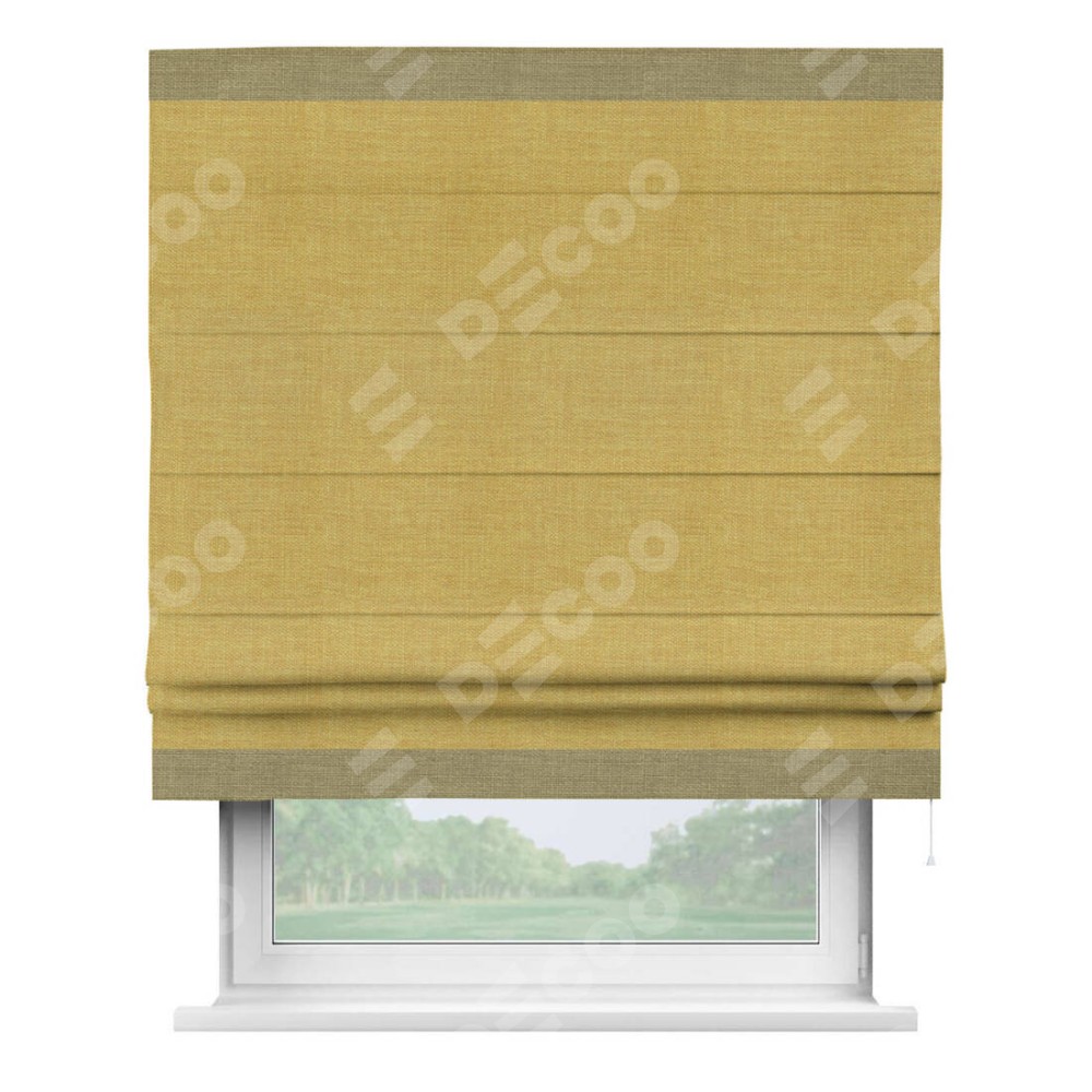 Римская штора «Кортин» с кантом Горизонт, для проема, ткань лён горчичный