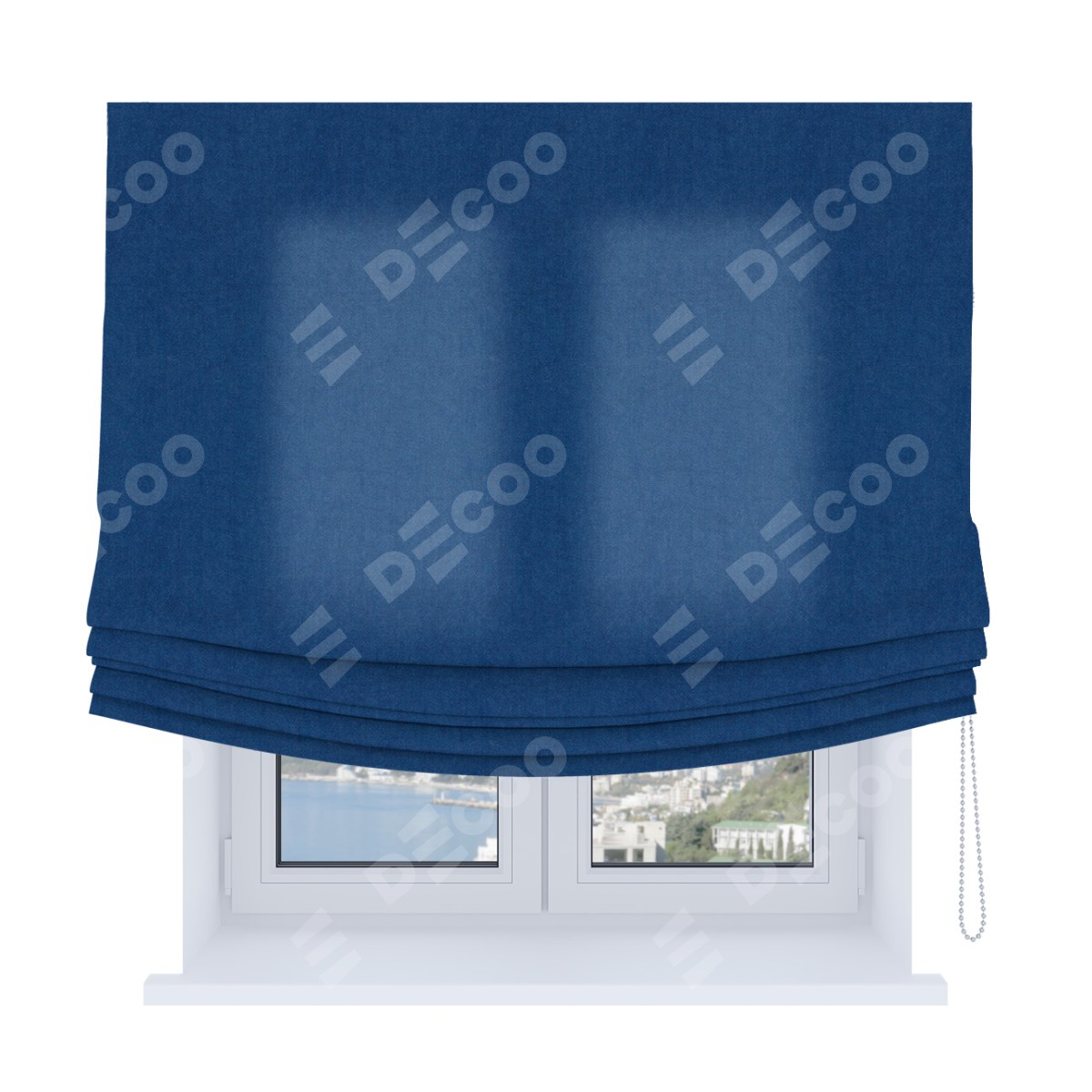Римская штора Soft производителя «Cortin», используется для проёма, пошита из ткани вельвет синий, артикул ткани 85554. Имеет универсальный механизм и подходит для монтажа: на потолок, на стену и в нишу. В отличие от стандартных римских штор, римская штора Soft не имеет горизонтальных вставок и нижнего отвеса. Это позволяет ткани произвольно драпироваться в свободные мягкие складки.