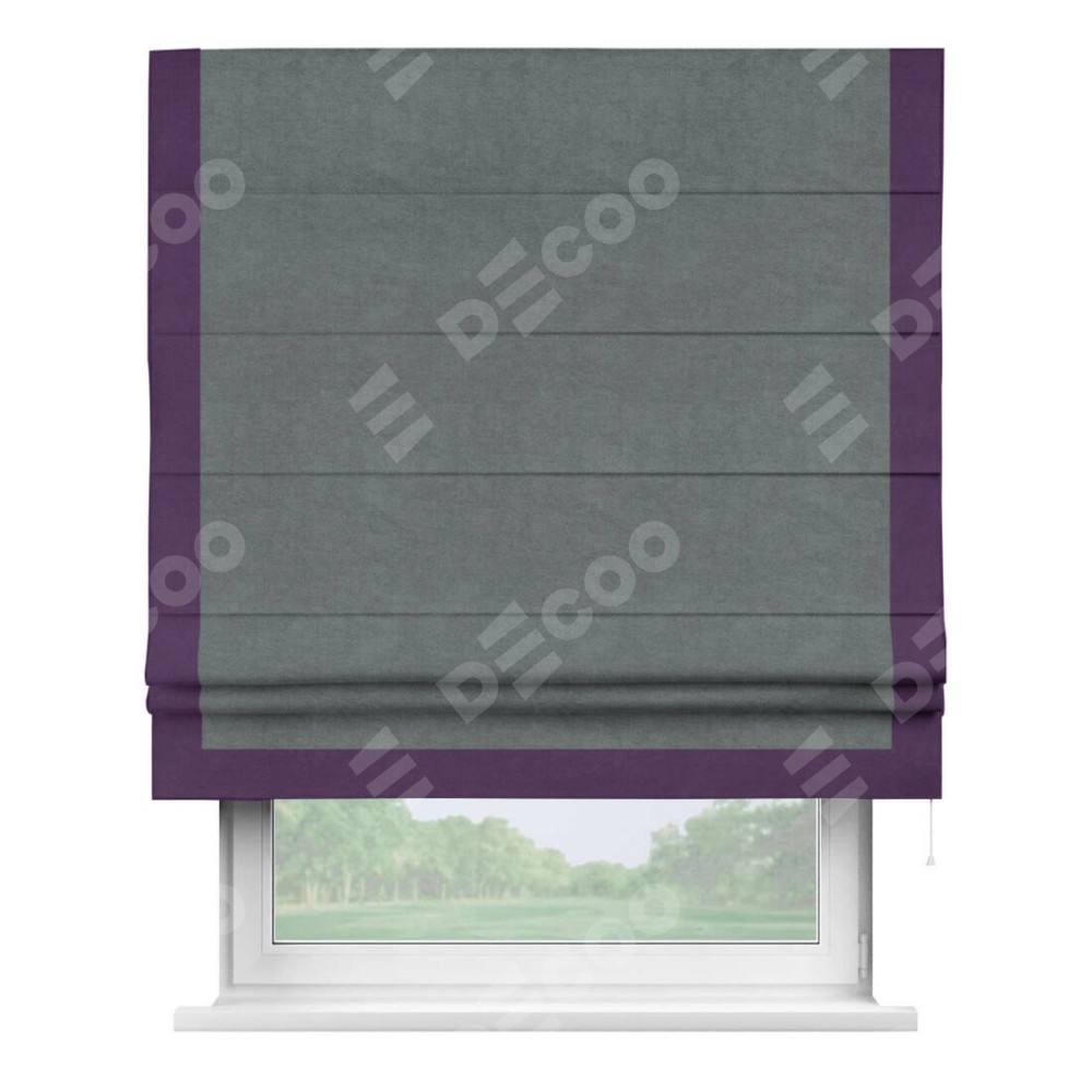 Римская штора «Кортин» с кантом Виктория, для проема, ткань вельвет серый