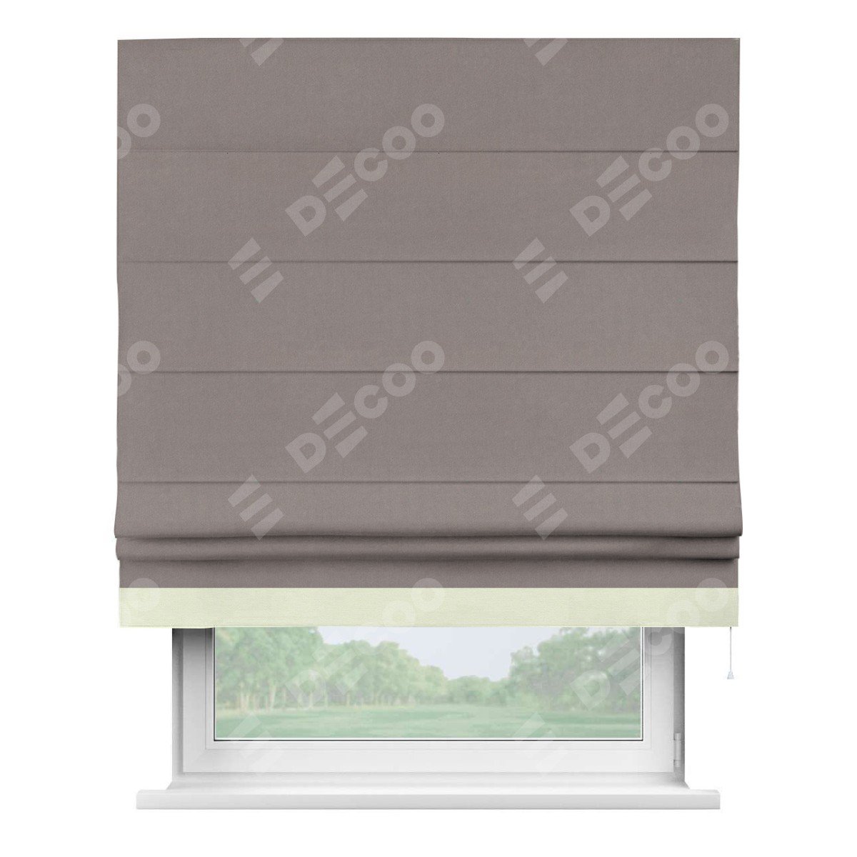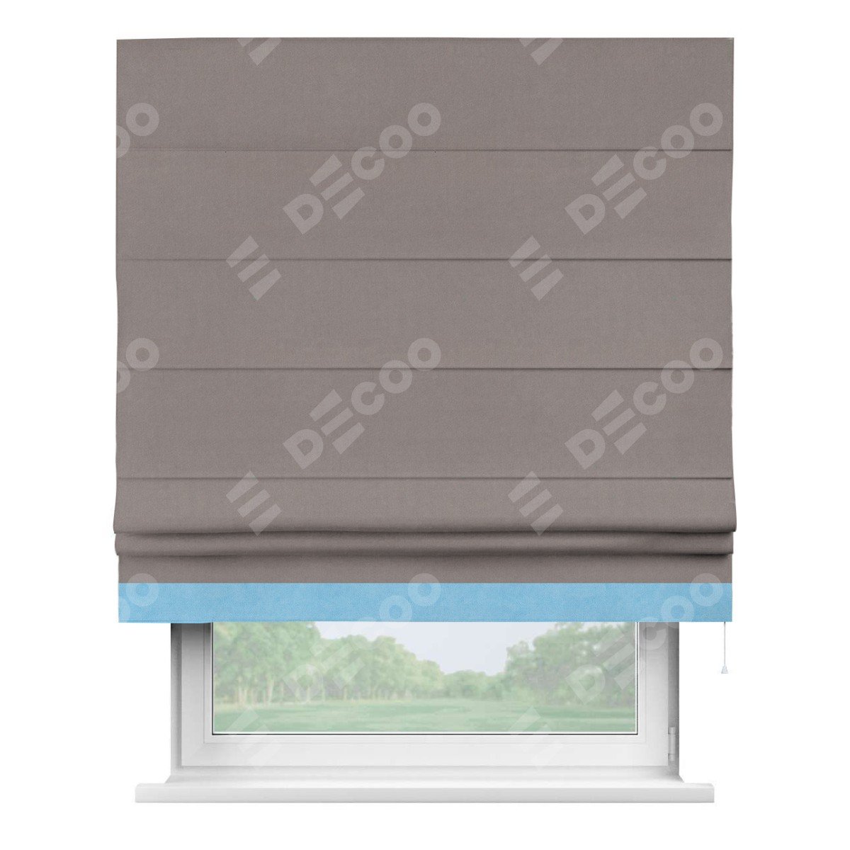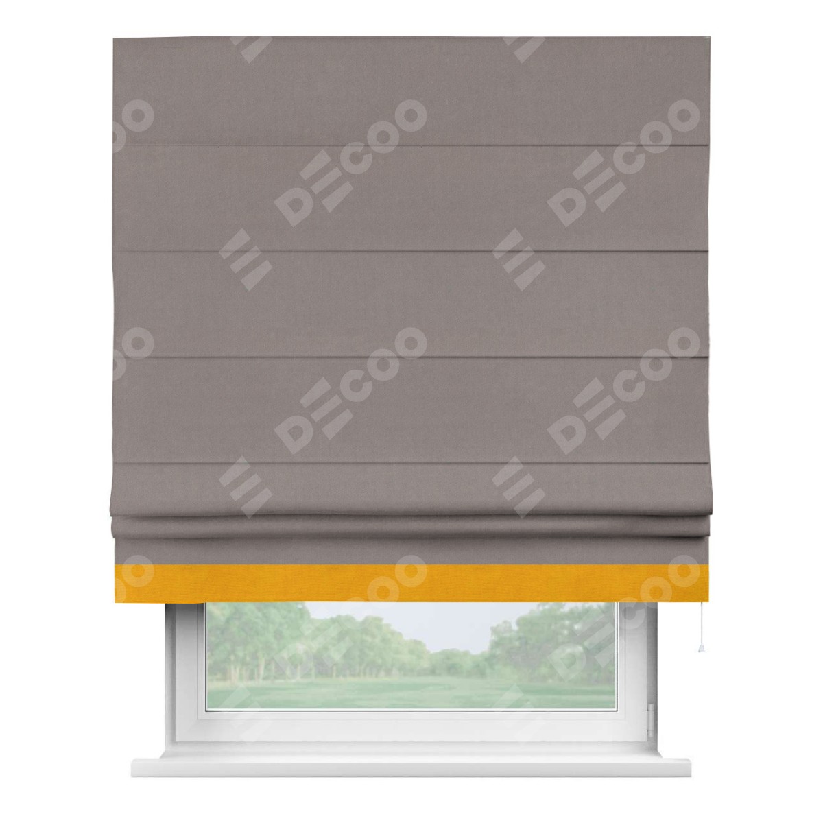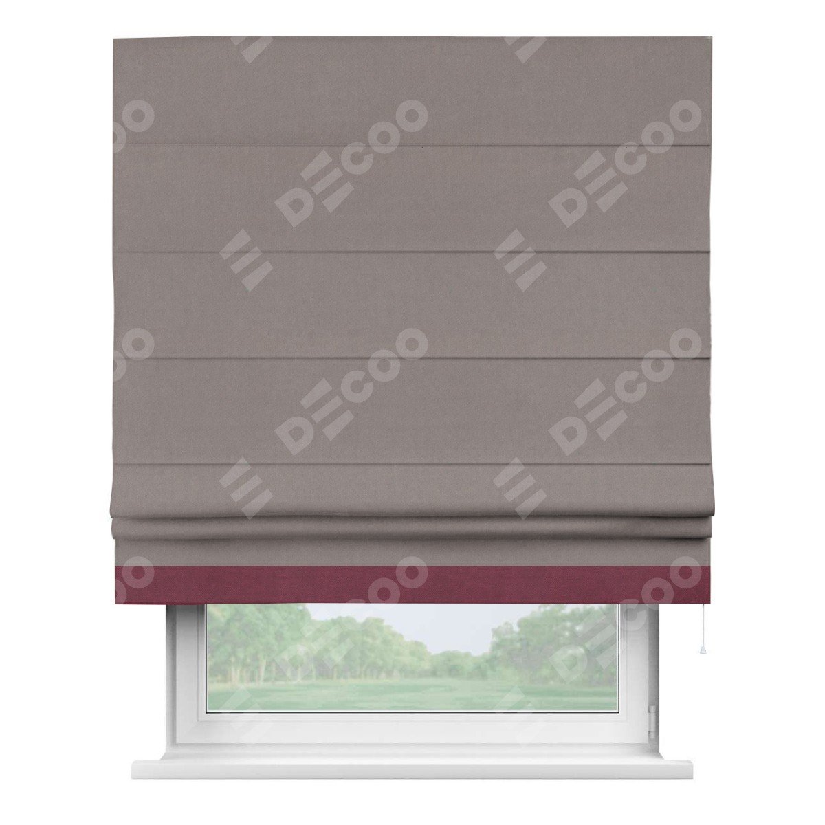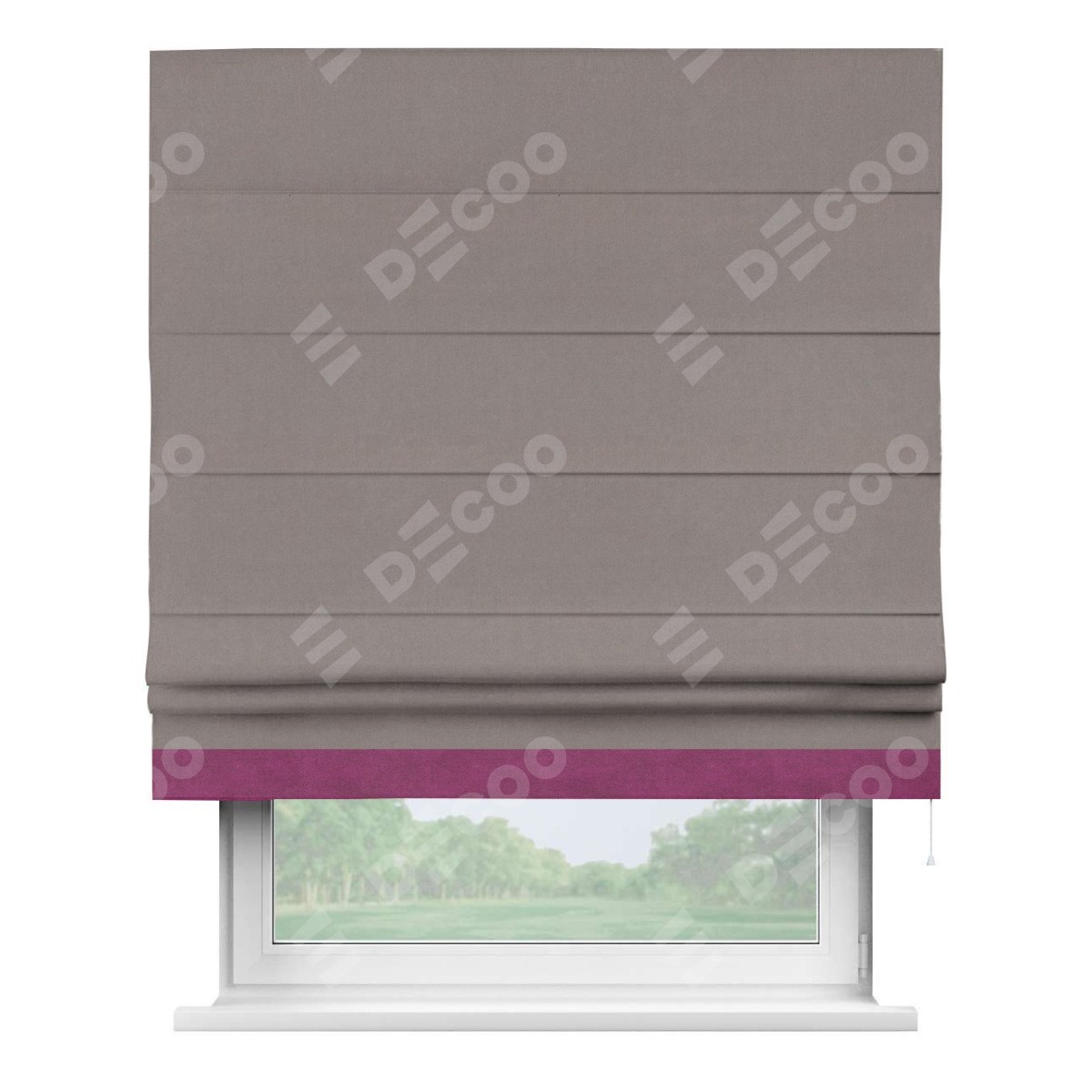 Римская штора производителя «Cortin», используется для проёма, пошита из ткани вельвет темно-бежевый, артикул ткани 82527. Отделка шторы кантом «Джестер», ткань для канта используется из вельвета разной расцветки на выбор. Имеет универсальный механизм и подходит для монтажа: на потолок, на стену и в нишу.