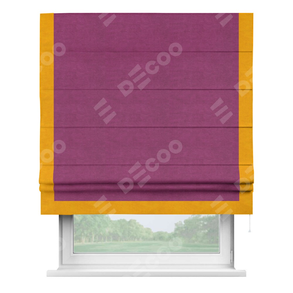 Римская штора «Кортин» с кантом Виктория, для проема, ткань вельвет фиолетовый