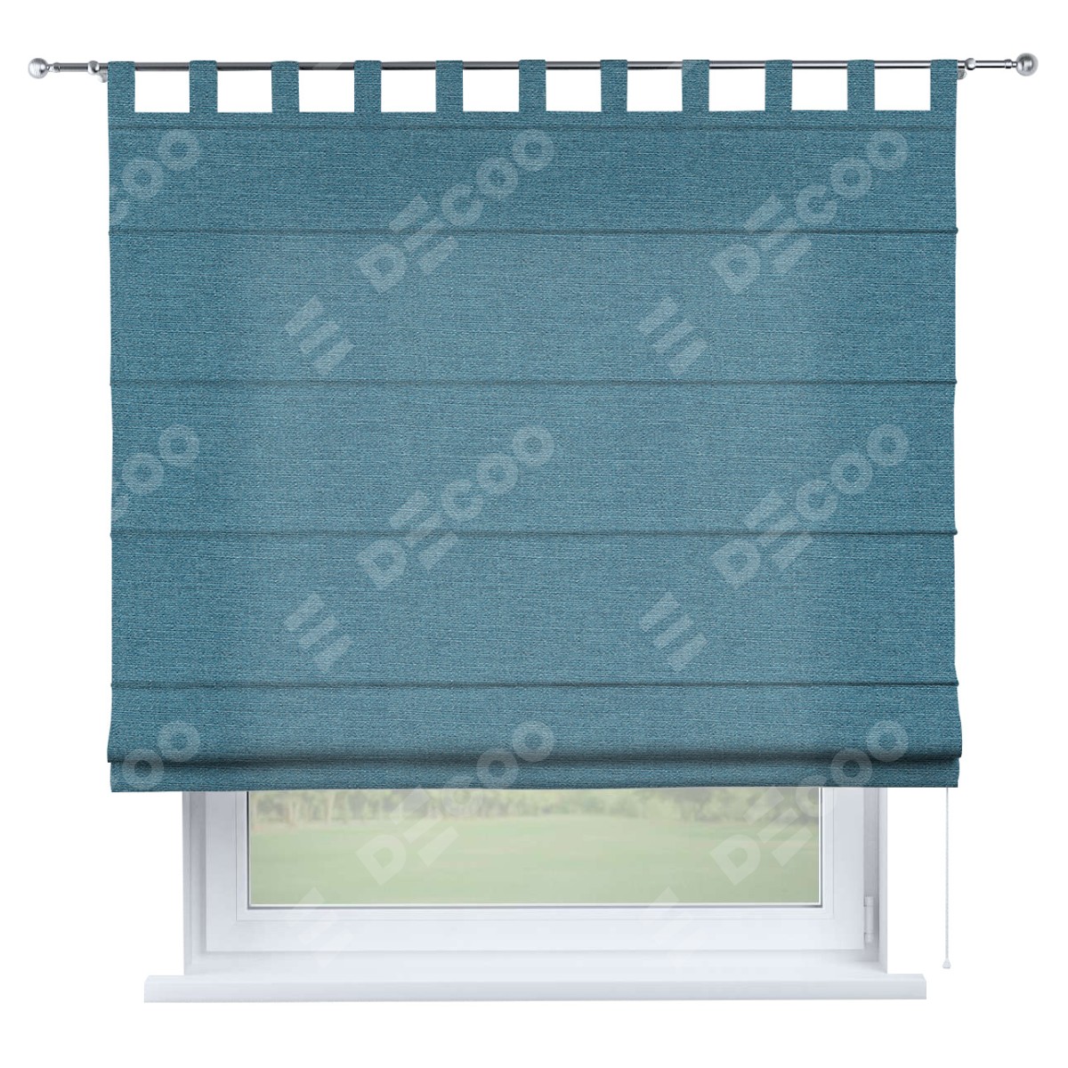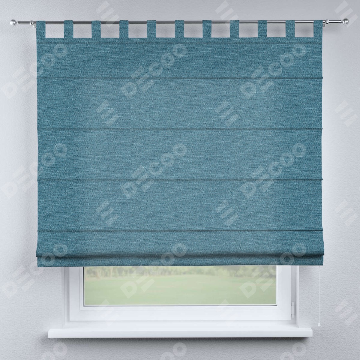 Римская штора производителя «Cortin», используется для проёма, пошита из ткани лён голубой, артикул ткани 63741. Данная модель пошита на петлях, комплектуется на выбор круглым карнизом и подходит для монтажа на стену. Римская штора на петлях имеет простую систему регулировки высоты, отличительным преимуществом данной модели является простой способ монтажа. Достаточно повесить ее на трубу и штора готова!