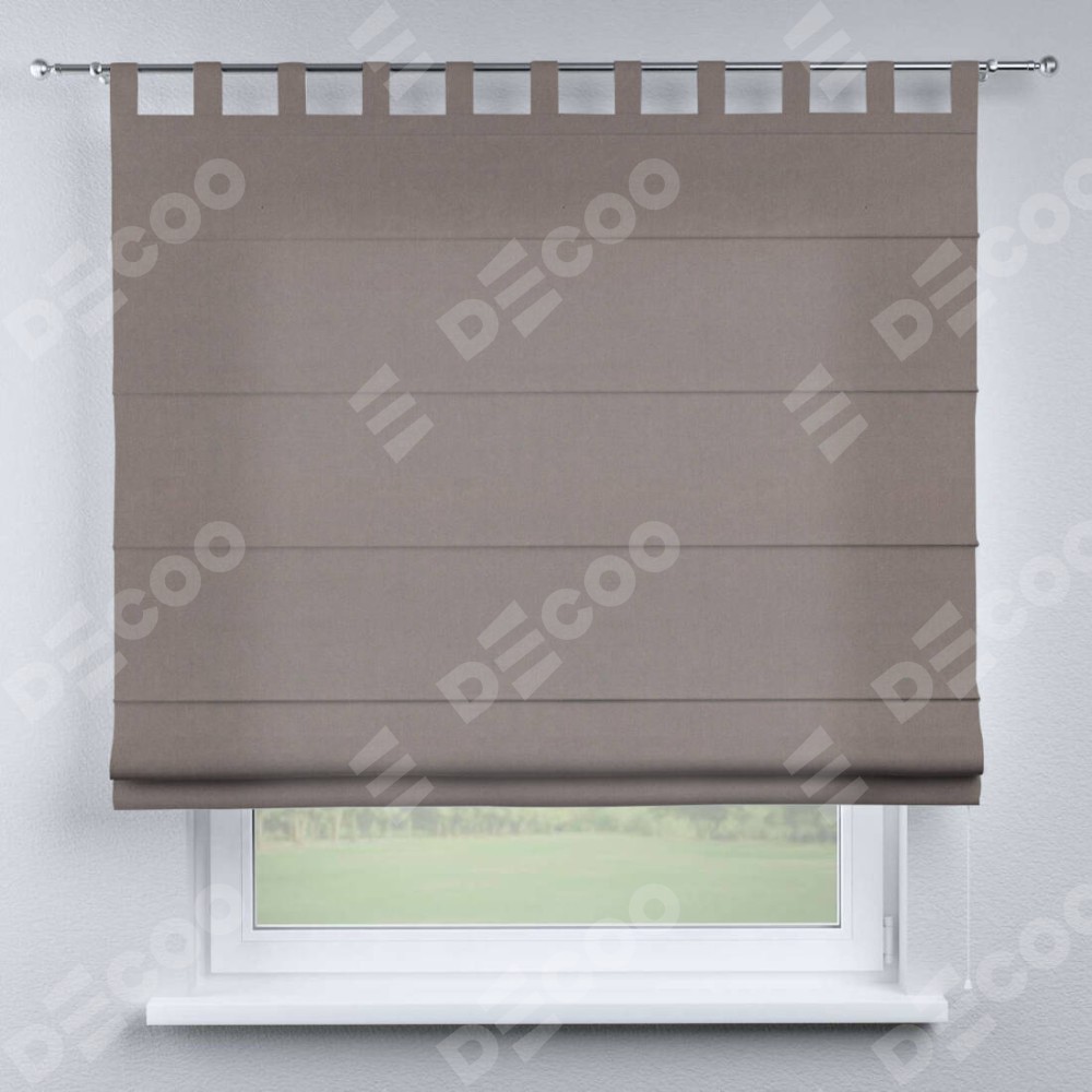 Римская штора производителя «Cortin», используется для проёма, пошита из ткани вельвет тёмно-бежевый, артикул ткани 82527. Данная модель пошита на петлях, комплектуется на выбор круглым карнизом и подходит для монтажа на стену. Римская штора на петлях имеет простую систему регулировки высоты, отличительным преимуществом данной модели является простой способ монтажа. Достаточно повесить ее на трубу и штора готова!