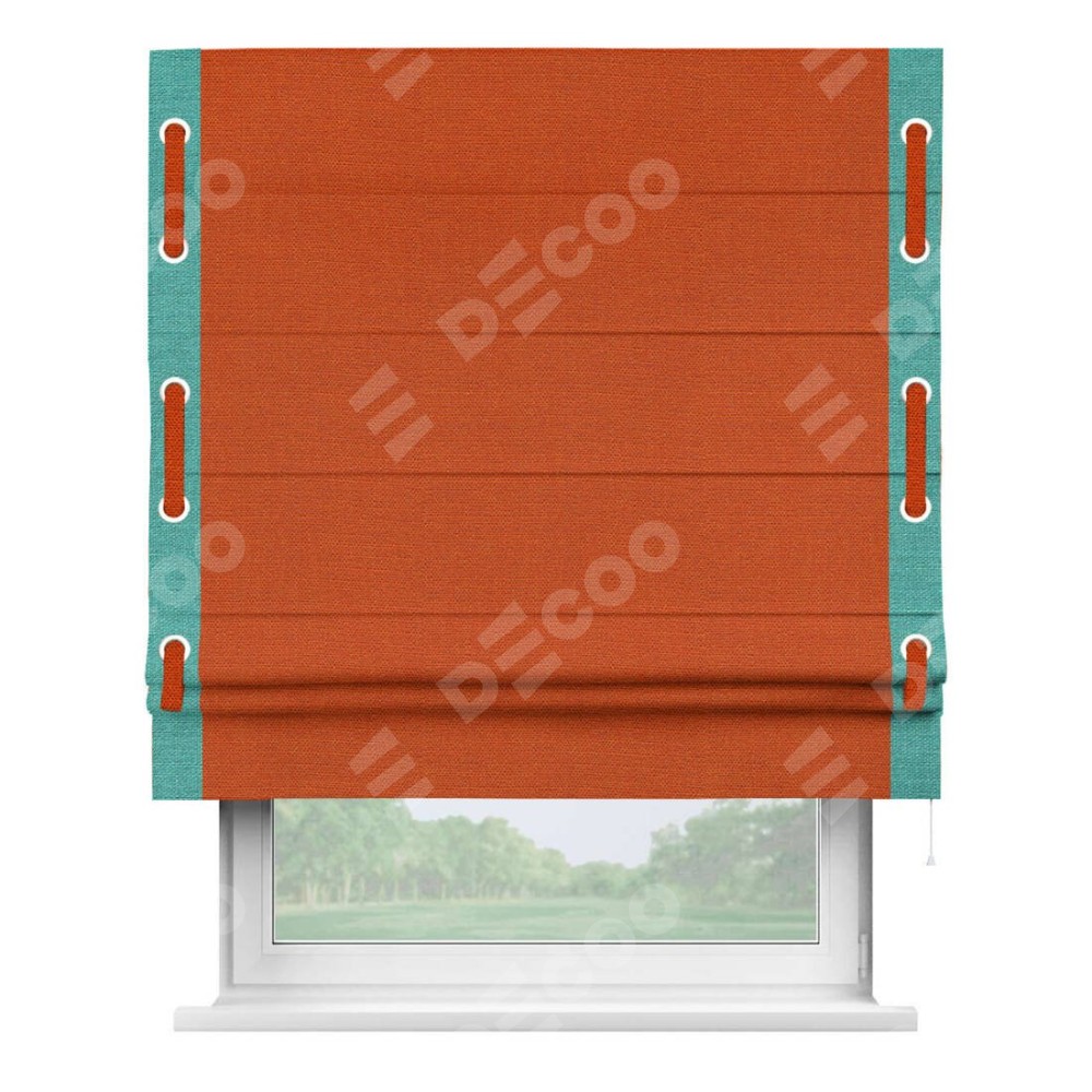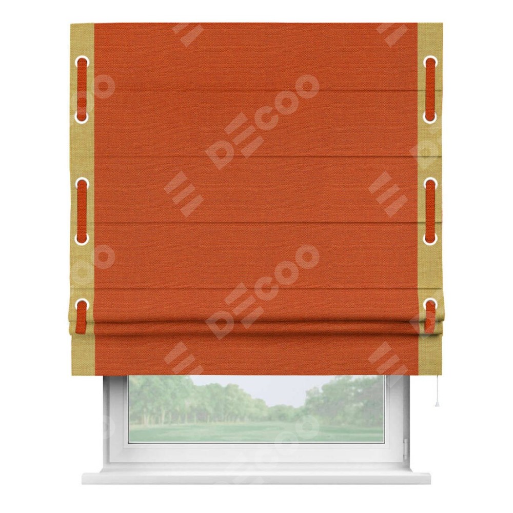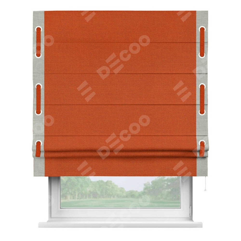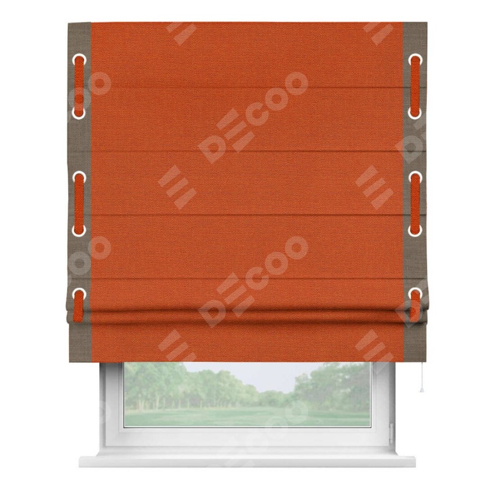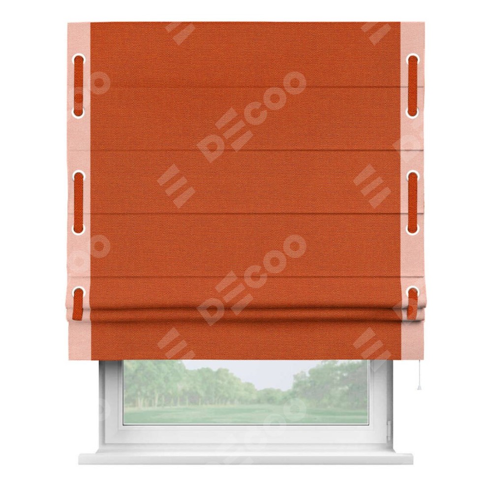 Римская штора «Кортин» с кантом Стрим Дуо (люверсы с пояском), для проема, ткань лён терракотовый