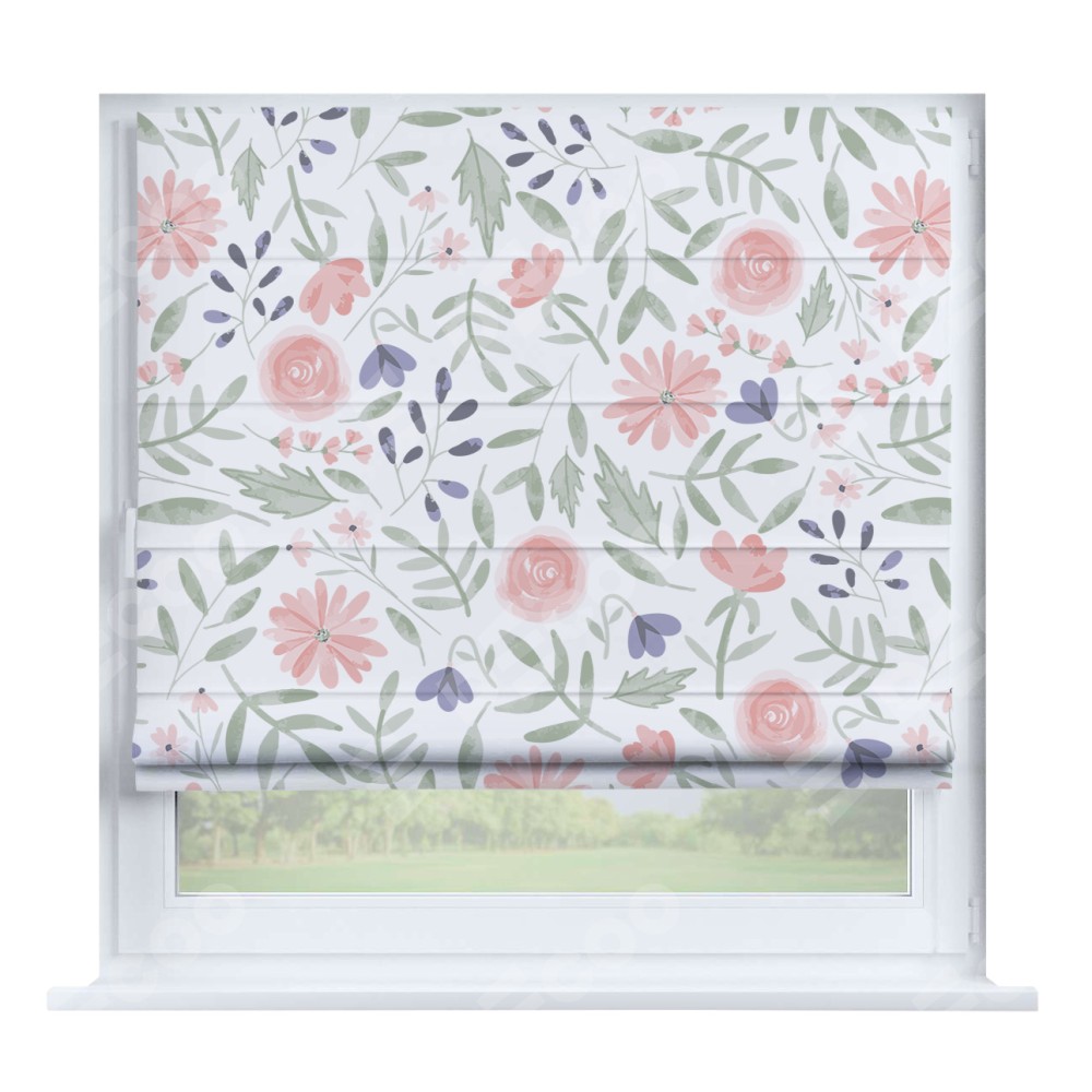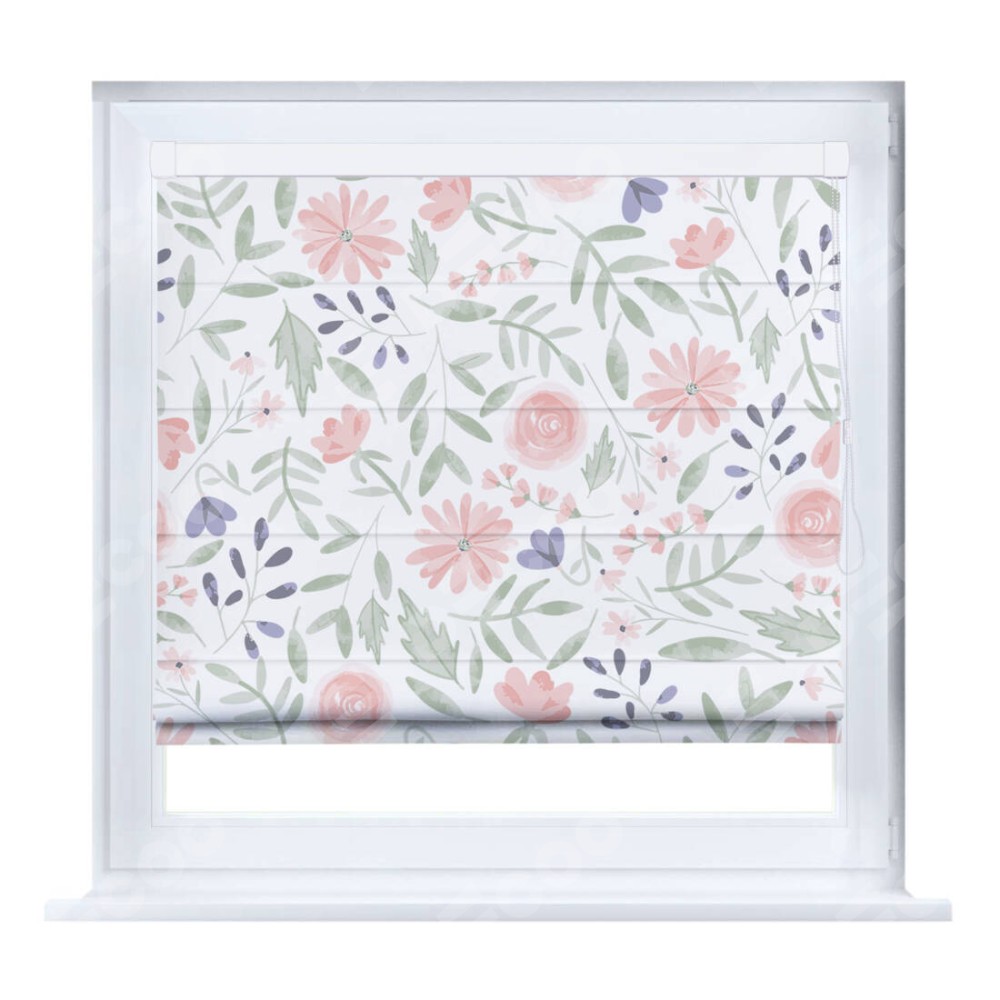 Римская штора производителя «Cortin», устанавливается на створку окна, пошита из ткани блэкаут с нанесением сублимационной печати «Изысканные цветы». Штора шьётся по индивидуальным размерам, для данного типа римской шторы возможная ширина от 35 до 150 см., высота до 250 см.