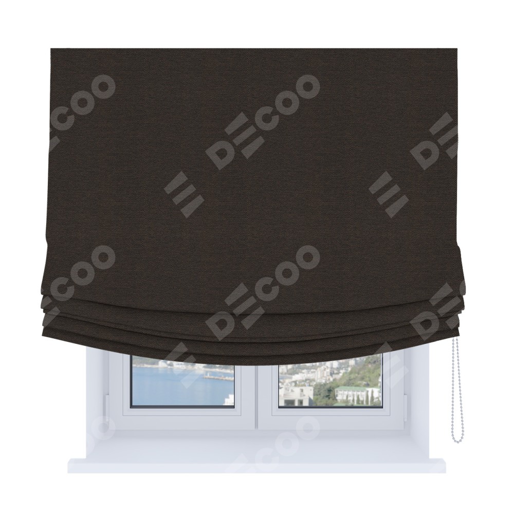 Римская штора Soft производителя «Cortin», используется для проёма, пошита из ткани лён димаут венге, артикул ткани 85410. Имеет универсальный механизм и подходит для монтажа: на потолок, на стену и в нишу. В отличие от стандартных римских штор, римская штора Soft не имеет горизонтальных вставок и нижнего отвеса. Это позволяет ткани произвольно драпироваться в свободные мягкие складки.