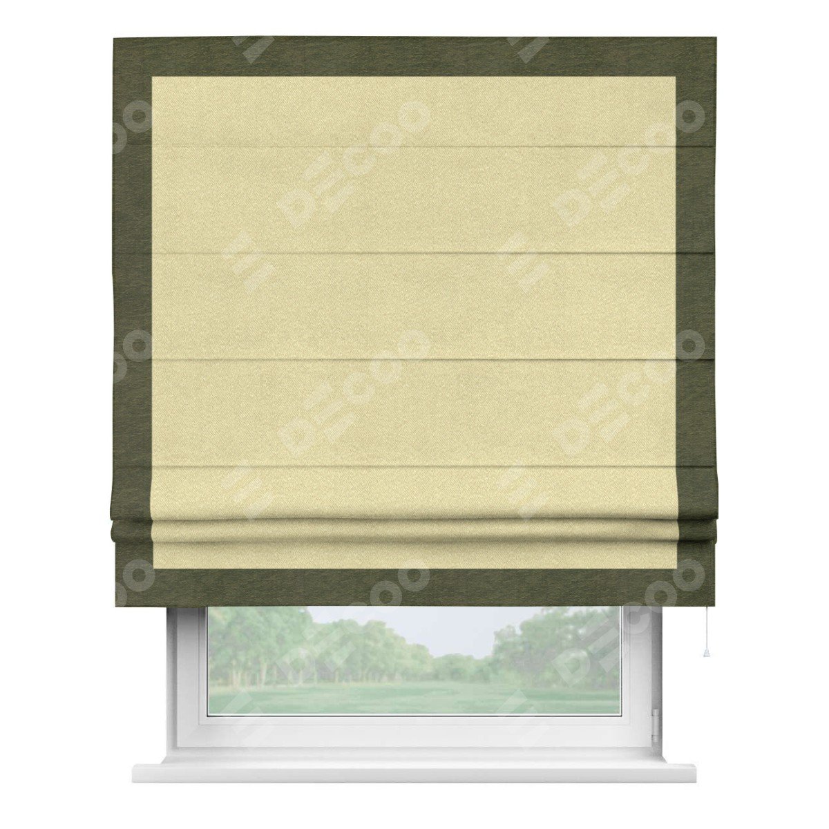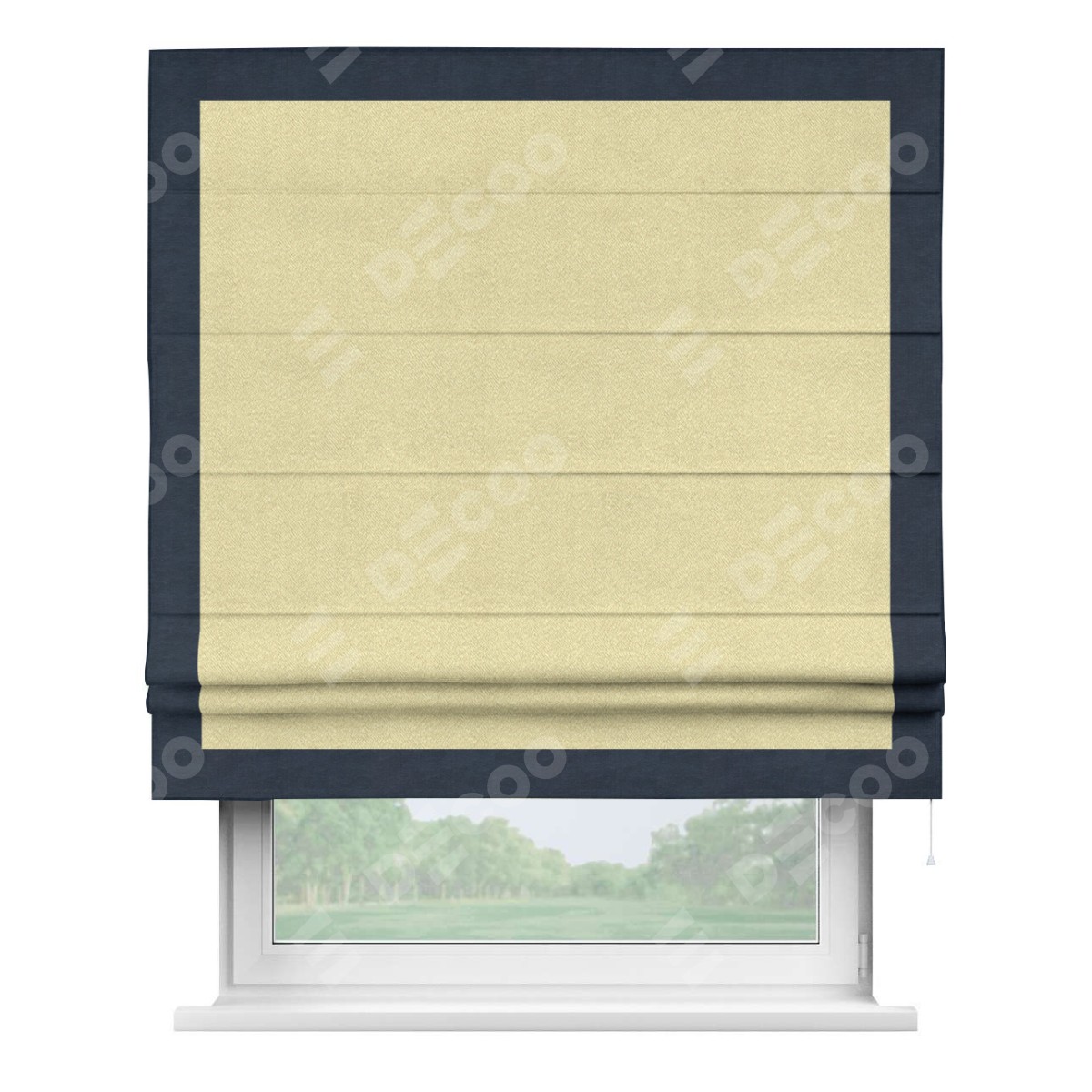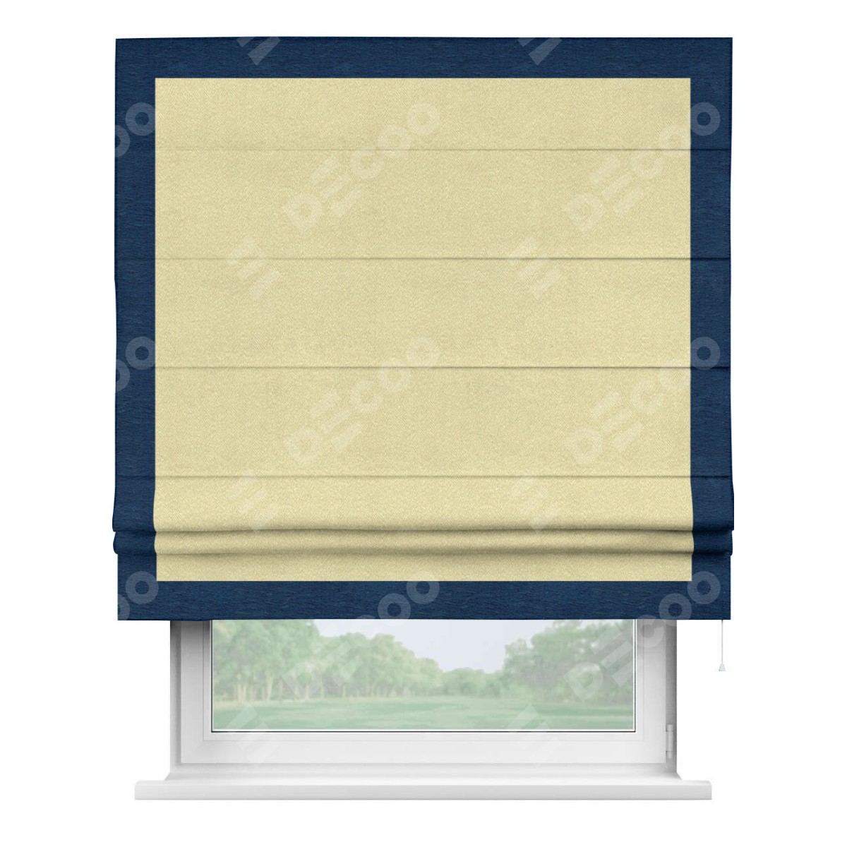 Римская штора производителя «Cortin», используется для проёма, пошита из ткани софт однотонный молочный, артикул 11938. Отделка шторы кантом «Чесс», ткань для канта используется из софта разной расцветки на выбор. Имеет универсальный механизм и подходит для монтажа: на потолок, на стену и в нишу.