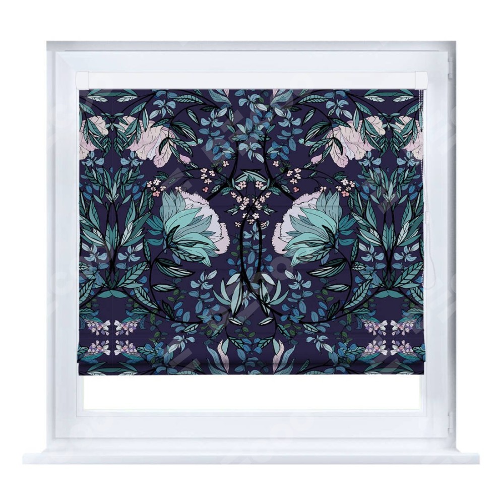 Римская штора «Кортин» на створку «Цветочный индиго»