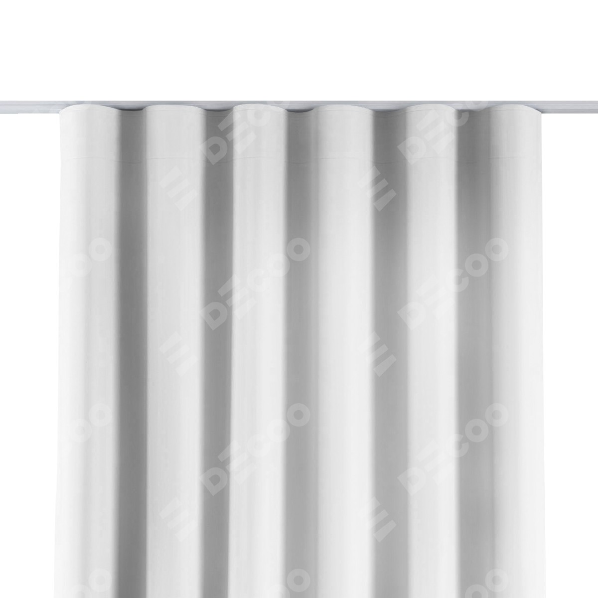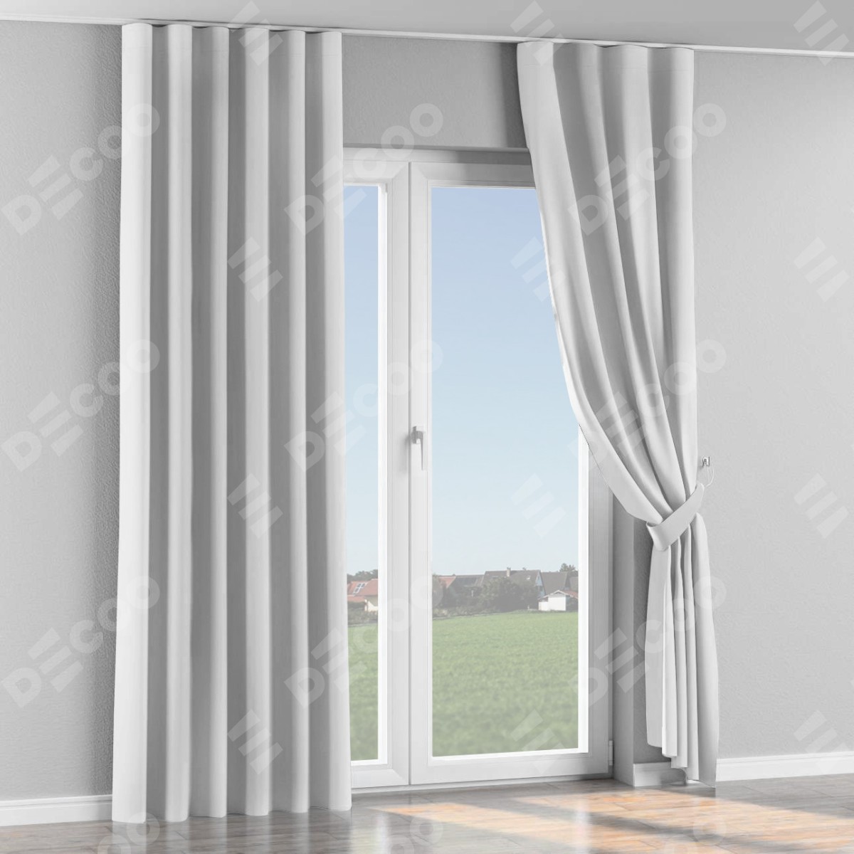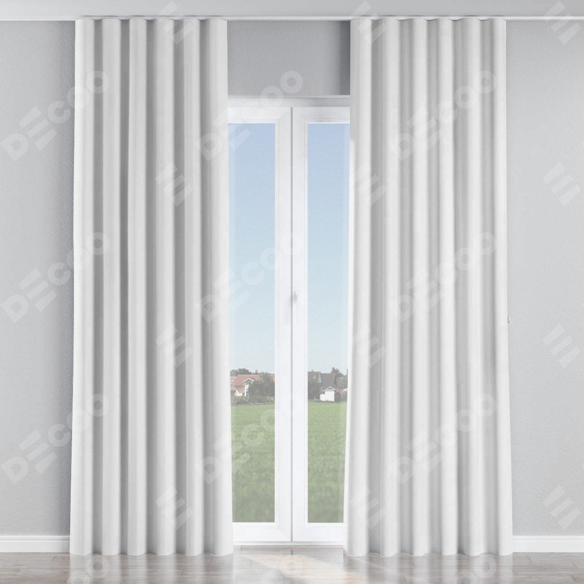 Комплект прямых штор, от производителя «Cortin», пошиты из ткани однотонная белоснежная, артикул ткани 41217. С изнаночной стороны в верхней части штор пристрачивается шторная лента с декоративными складками «Волна». Для создания элегантных складок прямые шторы шьются по стандарту с коэффициентом 1:2 (на 100 см. ширины проёма 200 см. ширины ткани).