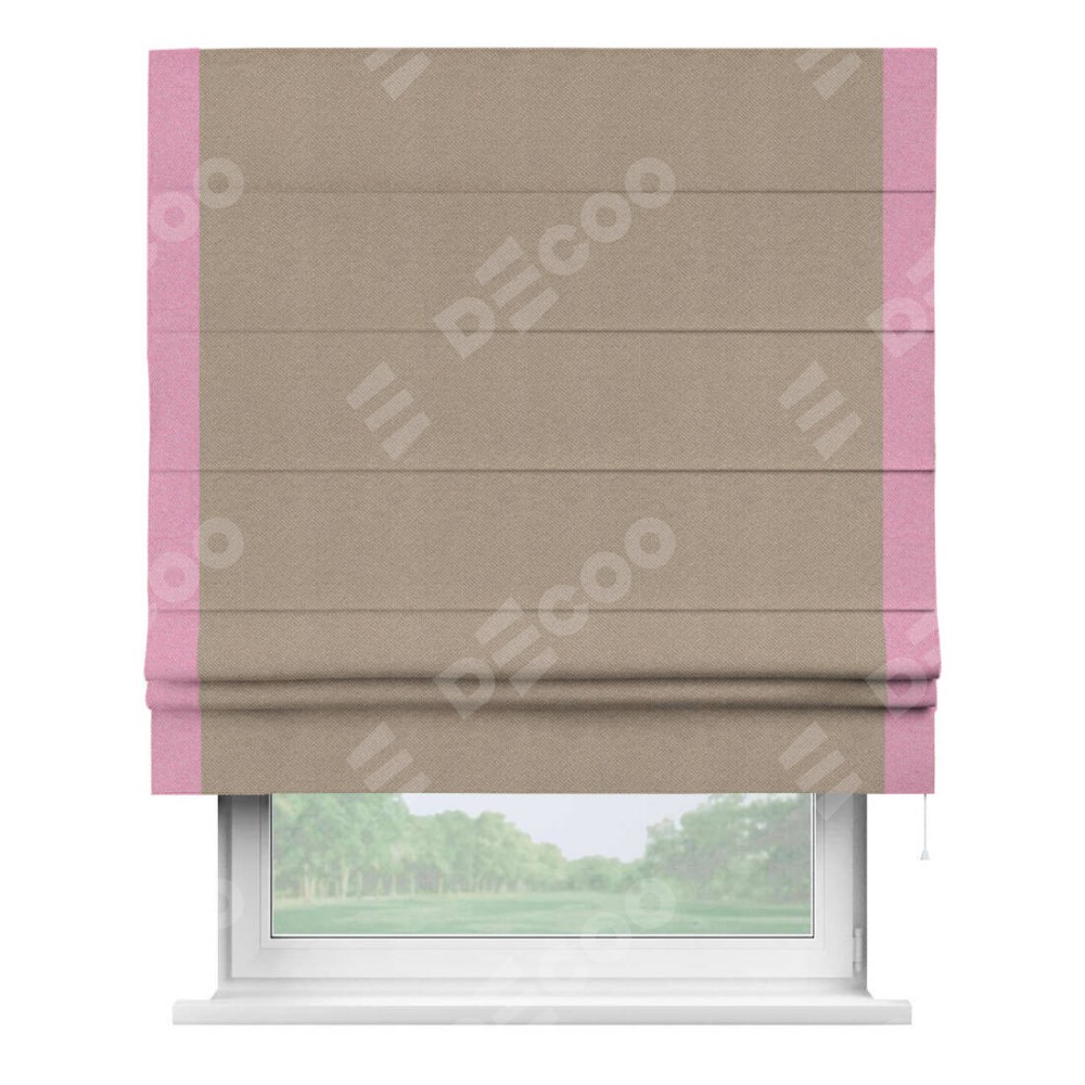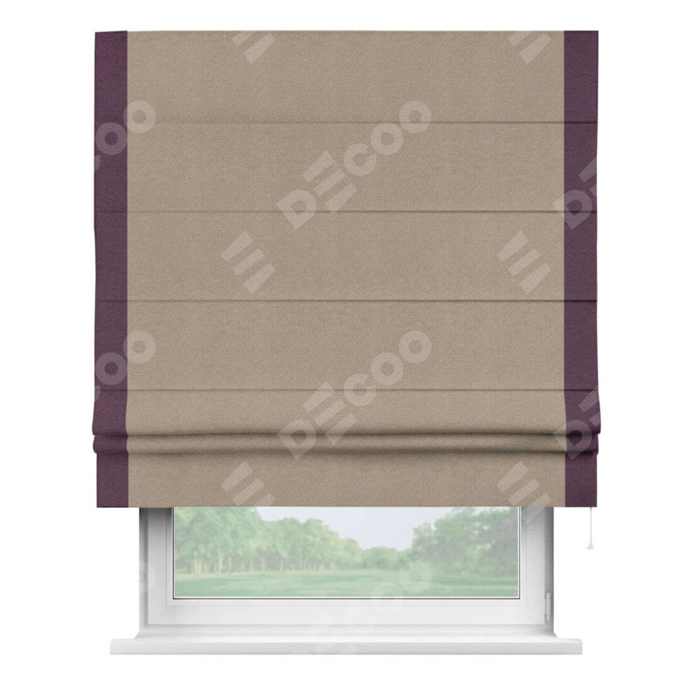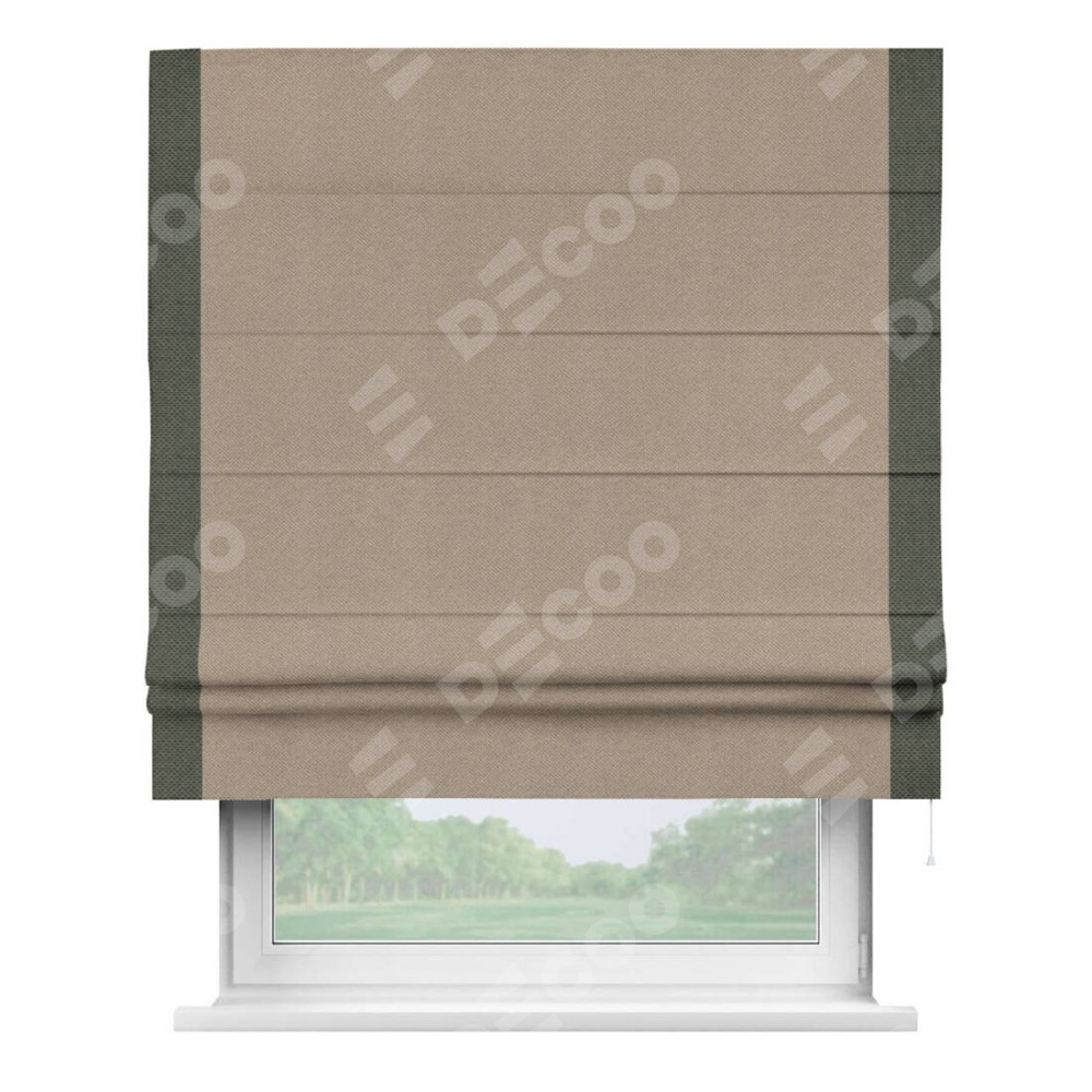 Римская штора «Кортин» с кантом Стрим Дуо, для проема, ткань лён димаут, светло-бежевый