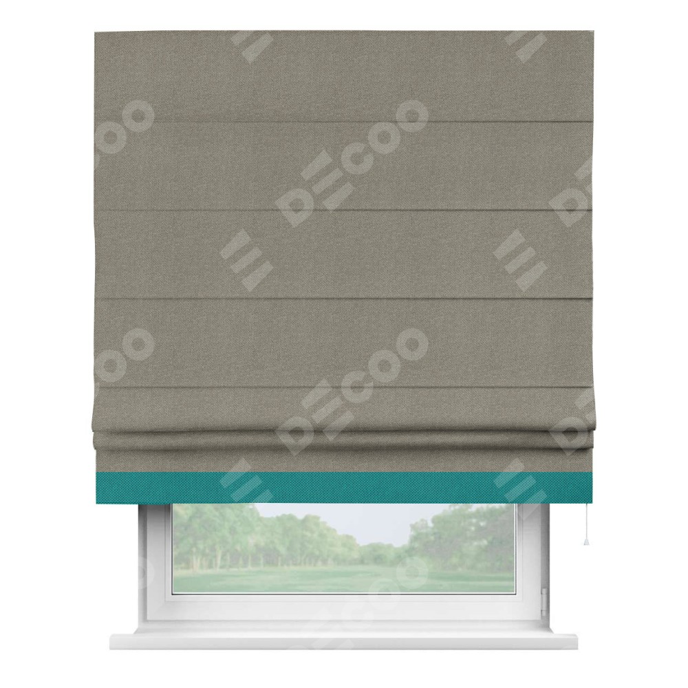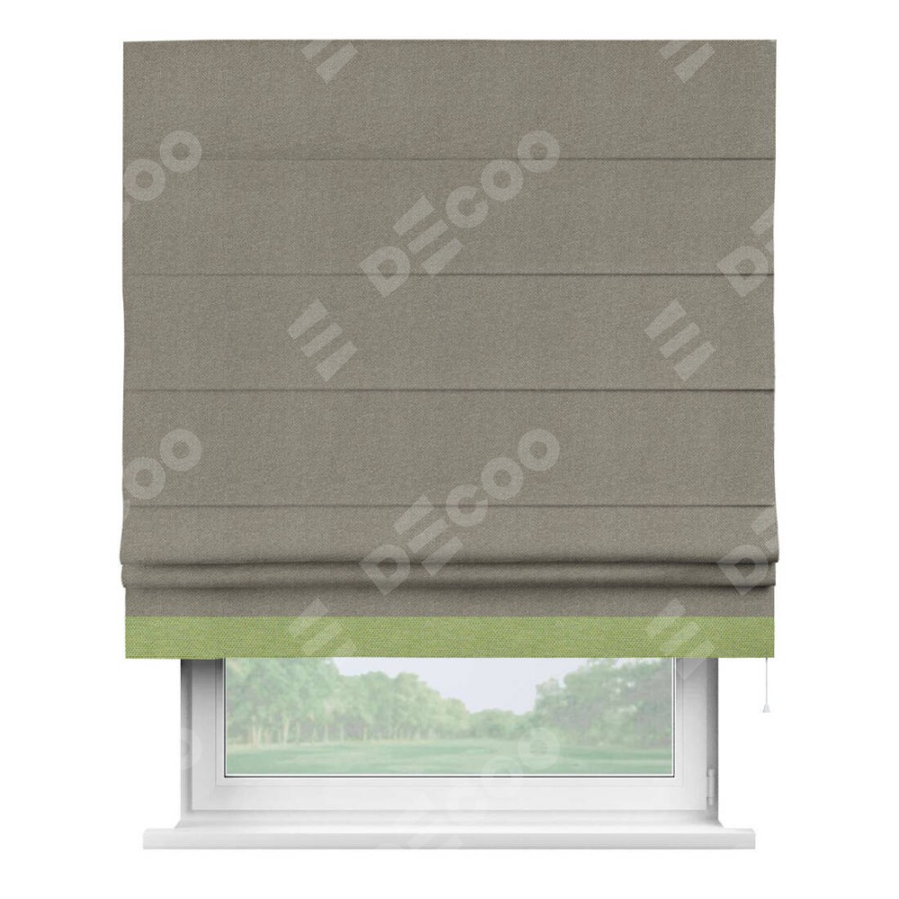 Римская штора «Кортин» с кантом Джестер, для проема, ткань лён димаут, серо-зелёный