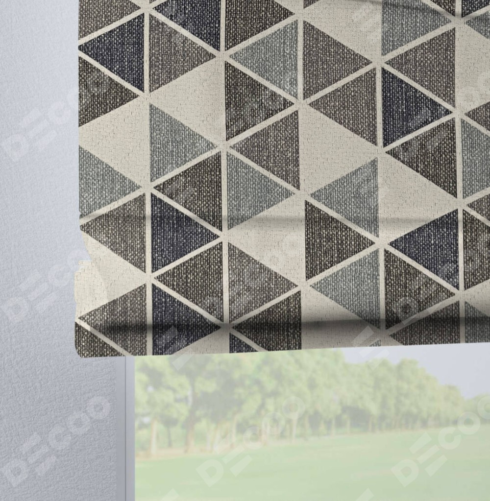 Римская штора на петлях «Кортин», ткань димаут «Треугольники синие»