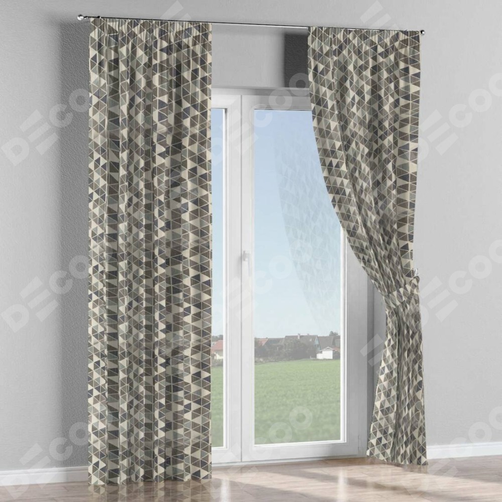 Комплект штор на тесьме «Карандаш», ткань димаут «Треугольники синие»