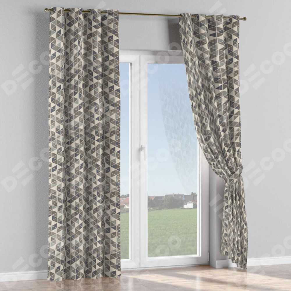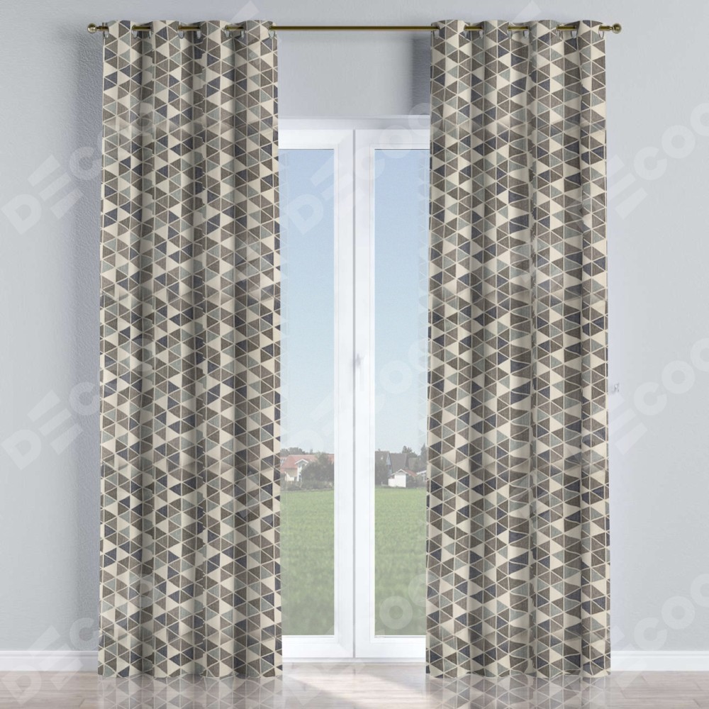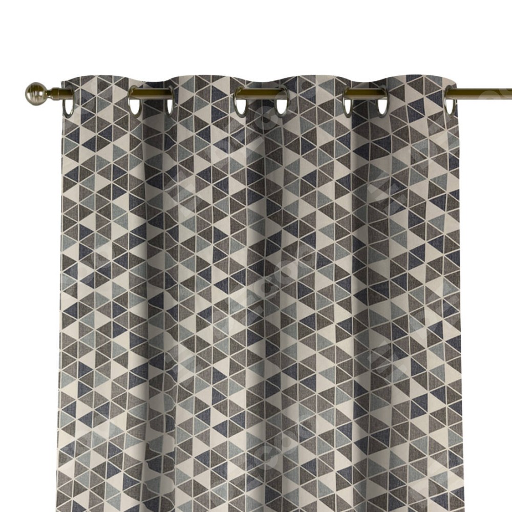 Комплект прямых штор, от производителя «Cortin», пошиты из ткани димаут «Треугольники синие», артикул ткани 23022. Данная модель пошита на люверсах, комплектуется на выбор круглым карнизом и подходит для монтажа на стену или потолок. Прямые шторы на люверсах шьются по стандарту с коэффициентом 1/2 (на 100 см. ширины проёма 200 см. ширины ткани), отличительным преимуществом данной модели является простой способ монтажа. Достаточно повесить ее на трубу и штора готова!