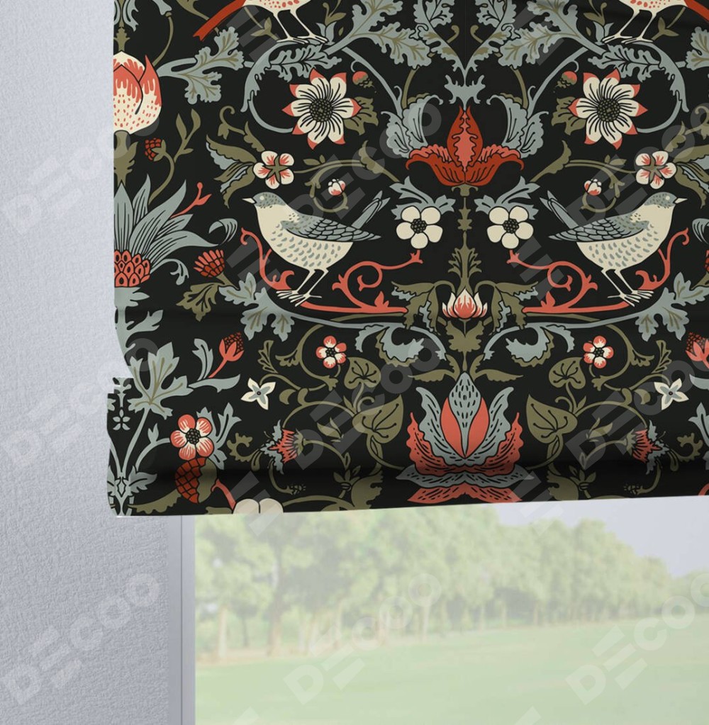 Римская штора производителя «Cortin», используется для проёма, пошита из ткани блэкаут с нанесением сублимационной печати «Зачарованные птицы». Данная модель пошита на петлях, комплектуется на выбор круглым карнизом и подходит для монтажа на стену. Римская штора на петлях имеет простую систему регулировки высоты, отличительным преимуществом данной модели является простой способ монтажа. Достаточно повесить ее на трубу и штора готова!