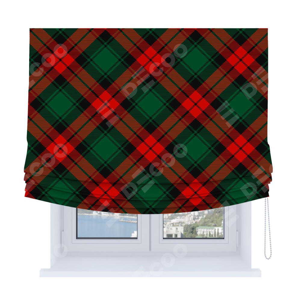 Римская штора Soft с мягкими складками, «Красно-зелёная клетка»