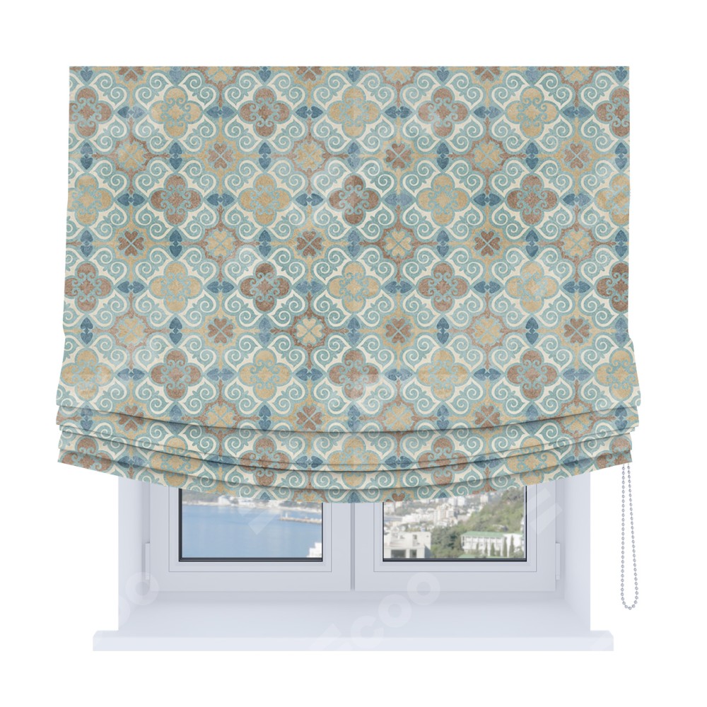 Римская штора Soft производителя «Cortin», используется для проёма, пошита из ткани блэкаут с нанесением сублимационной печати «Фарида». Имеет универсальный механизм и подходит для монтажа: на потолок, на стену и в нишу. В отличие от стандартных римских штор, римская штора Soft не имеет горизонтальных вставок и нижнего отвеса. Это позволяет ткани произвольно драпироваться в свободные мягкие складки.