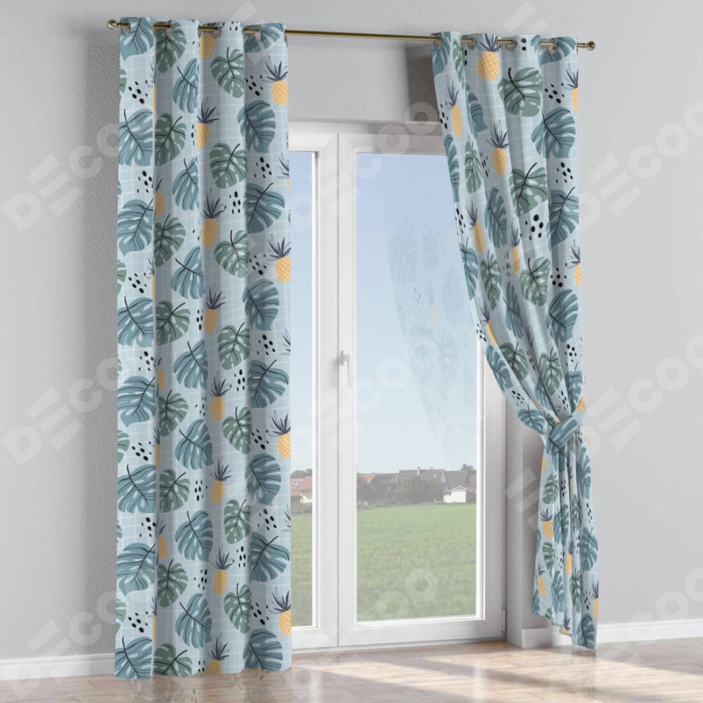 Комплект штор на люверсах «Ананасы и листья монстеры»