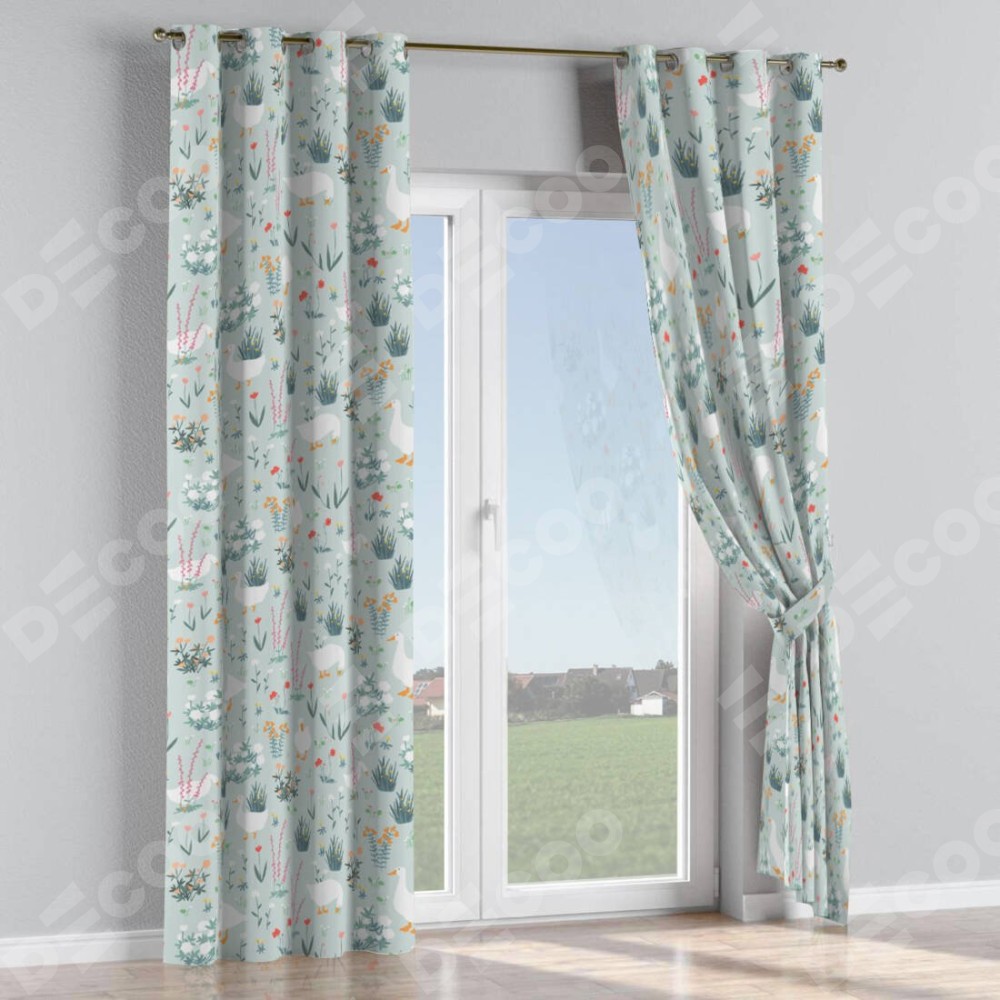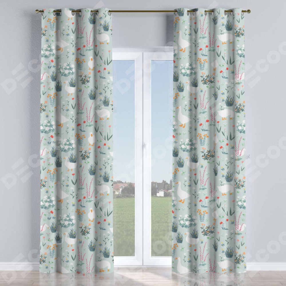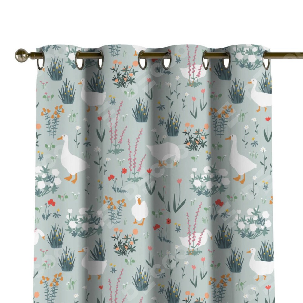 Комплект прямых штор, от производителя «Cortin», пошиты из ткани блэкаут с нанесением сублимационной печати «Гуси на лугу». Данная модель пошита на люверсах, комплектуется на выбор круглым карнизом и подходит для монтажа на стену или потолок. Прямые шторы на люверсах шьются по стандарту с коэффициентом 1/2 (на 100 см. ширины проёма 200 см. ширины ткани), отличительным преимуществом данной модели является простой способ монтажа. Достаточно повесить ее на трубу и штора готова!