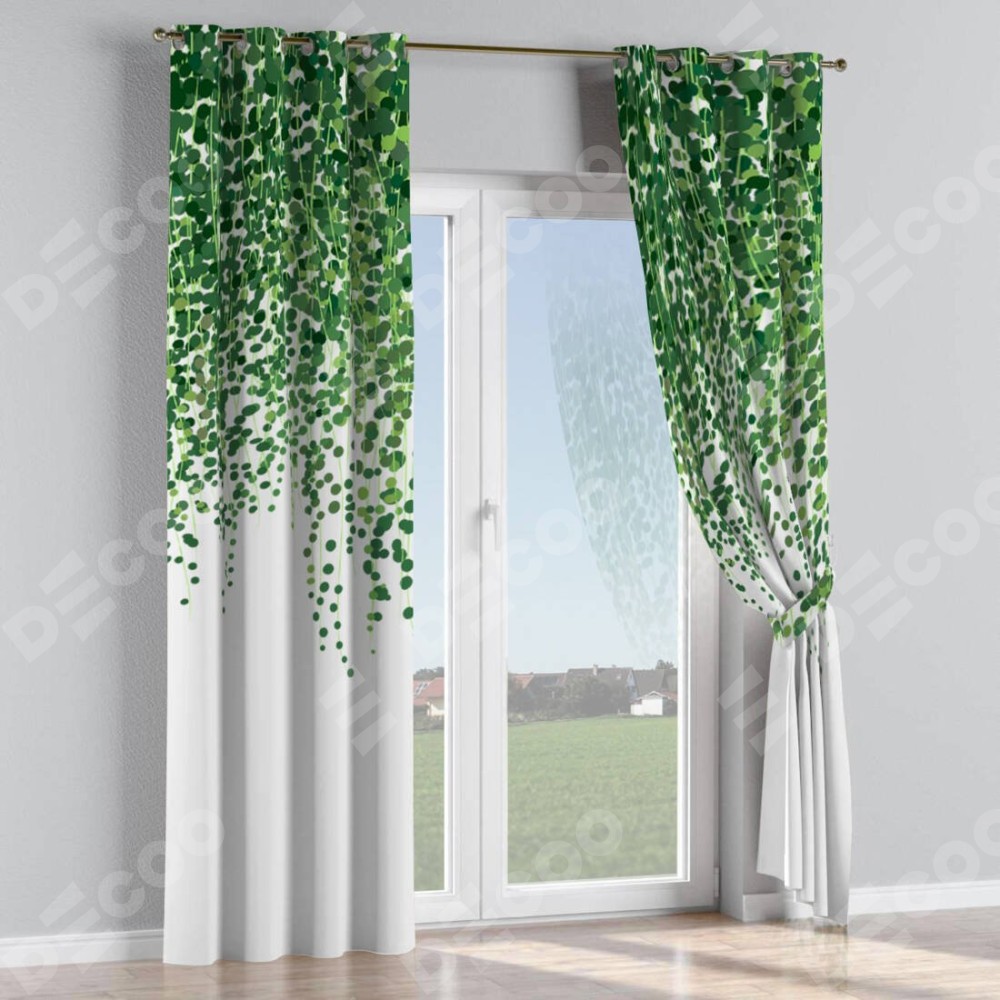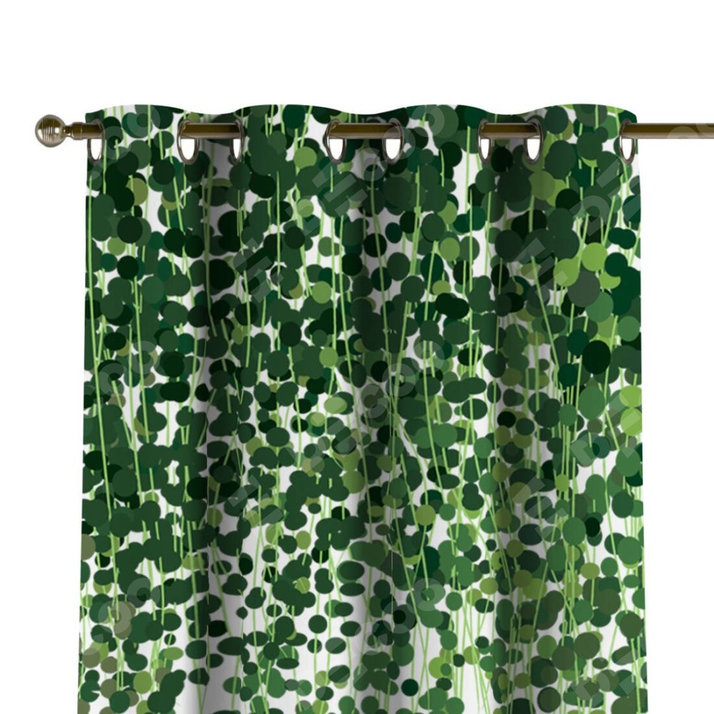 Комплект прямых штор, от производителя «Cortin», пошиты из ткани блэкаут с нанесением сублимационной печати «Зелёный занавес». Данная модель пошита на люверсах, комплектуется на выбор круглым карнизом и подходит для монтажа на стену или потолок. Прямые шторы на люверсах шьются по стандарту с коэффициентом 1/2 (на 100 см. ширины проёма 200 см. ширины ткани), отличительным преимуществом данной модели является простой способ монтажа. Достаточно повесить ее на трубу и штора готова!