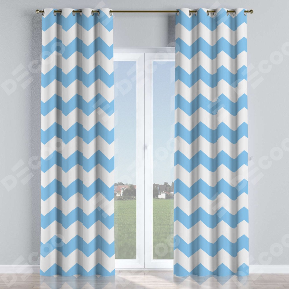 Комплект прямых штор, от производителя «Cortin», пошиты из ткани блэкаут с нанесением сублимационной печати «Зигзаг крупный». Данная модель пошита на люверсах, комплектуется на выбор круглым карнизом и подходит для монтажа на стену или потолок. Прямые шторы на люверсах шьются по стандарту с коэффициентом 1/2 (на 100 см. ширины проёма 200 см. ширины ткани), отличительным преимуществом данной модели является простой способ монтажа. Достаточно повесить ее на трубу и штора готова!