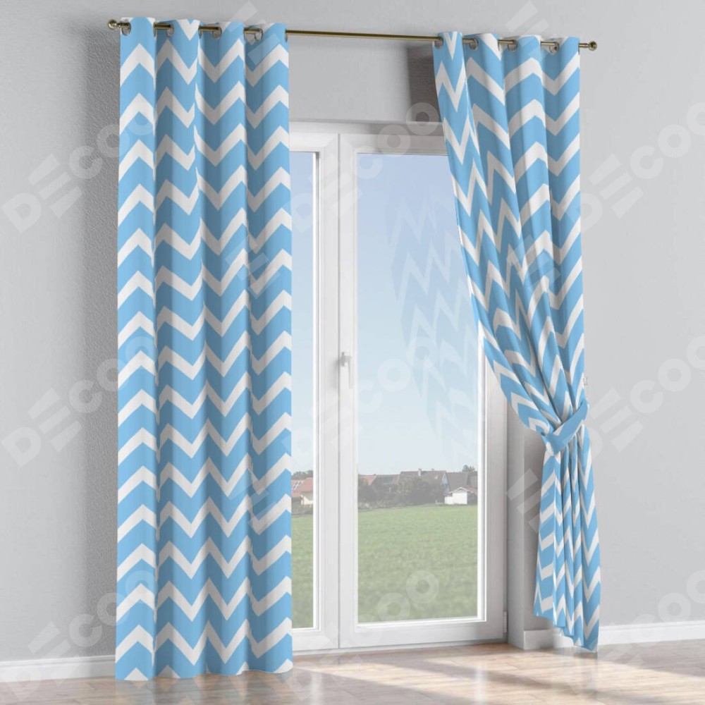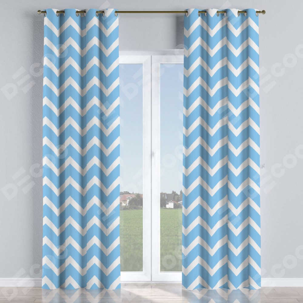 Комплект прямых штор, от производителя «Cortin», пошиты из ткани блэкаут с нанесением сублимационной печати «Зигзаг средний». Данная модель пошита на люверсах, комплектуется на выбор круглым карнизом и подходит для монтажа на стену или потолок. Прямые шторы на люверсах шьются по стандарту с коэффициентом 1/2 (на 100 см. ширины проёма 200 см. ширины ткани), отличительным преимуществом данной модели является простой способ монтажа. Достаточно повесить ее на трубу и штора готова!