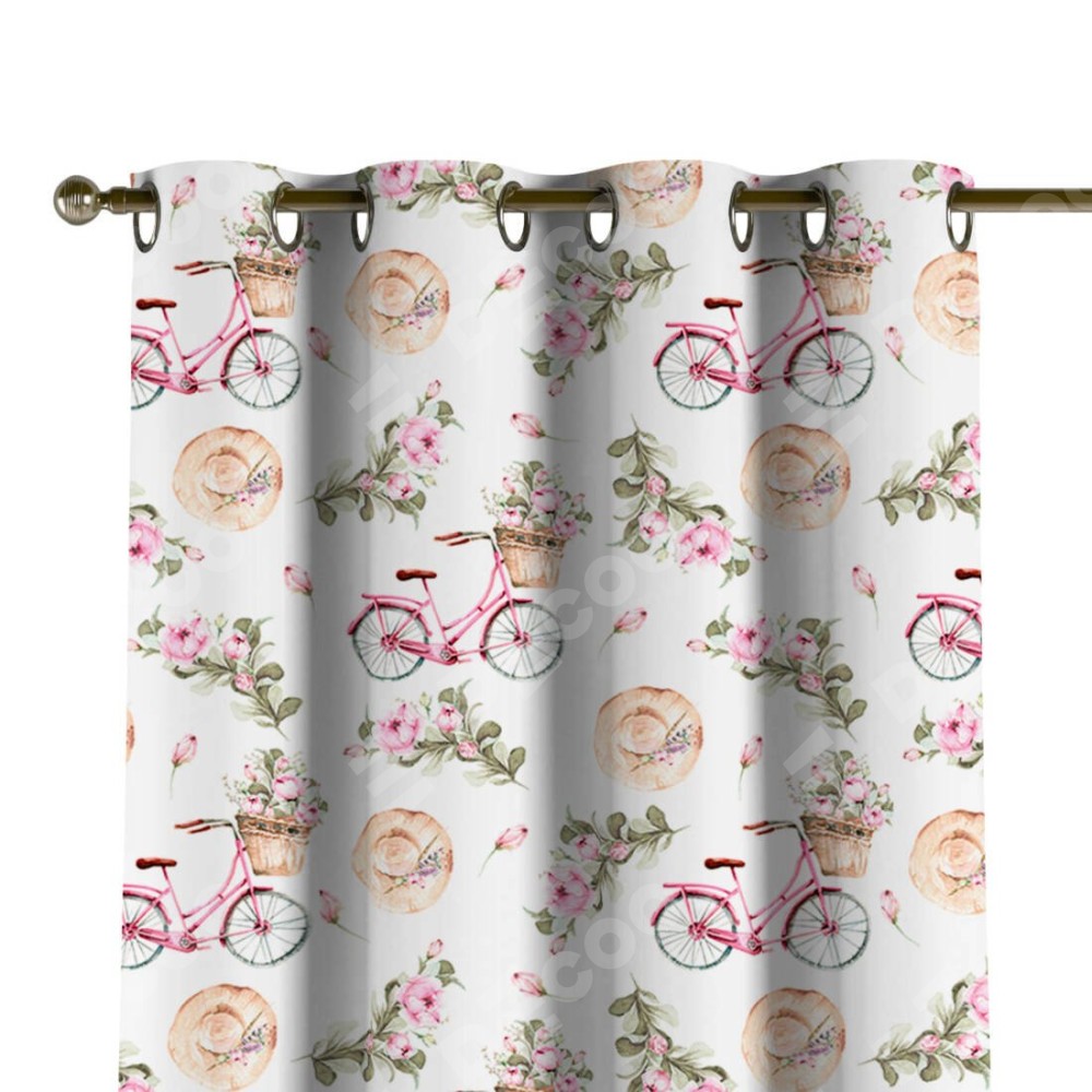 Комплект прямых штор, от производителя «Cortin», пошиты из ткани блэкаут с нанесением сублимационной печати «Розовый велосипед». Данная модель пошита на люверсах, комплектуется на выбор круглым карнизом и подходит для монтажа на стену или потолок. Прямые шторы на люверсах шьются по стандарту с коэффициентом 1/2 (на 100 см. ширины проёма 200 см. ширины ткани), отличительным преимуществом данной модели является простой способ монтажа. Достаточно повесить ее на трубу и штора готова!