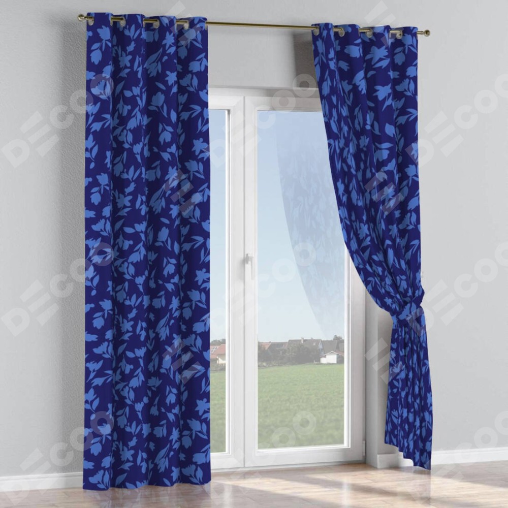 Комплект прямых штор, от производителя «Cortin», пошиты из ткани блэкаут с нанесением сублимационной печати «Синие цветы». Данная модель пошита на люверсах, комплектуется на выбор круглым карнизом и подходит для монтажа на стену или потолок. Прямые шторы на люверсах шьются по стандарту с коэффициентом 1/2 (на 100 см. ширины проёма 200 см. ширины ткани), отличительным преимуществом данной модели является простой способ монтажа. Достаточно повесить ее на трубу и штора готова!