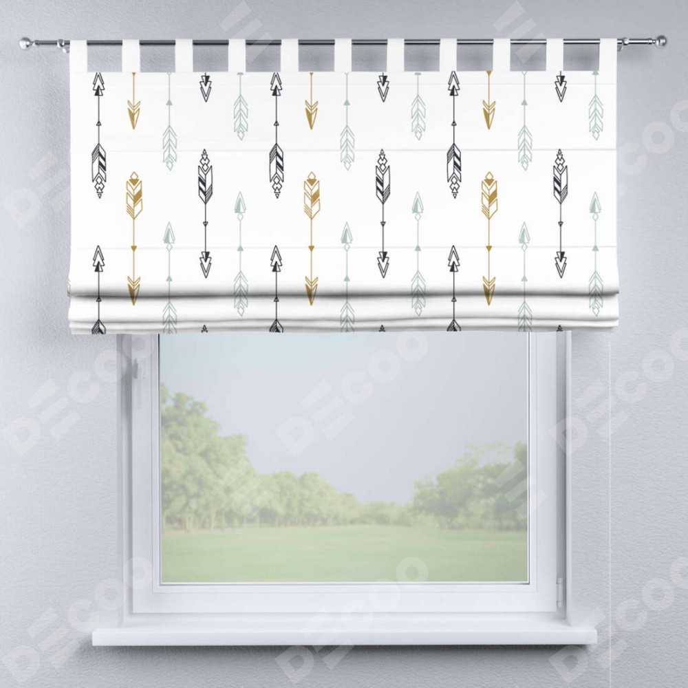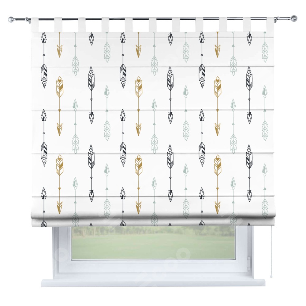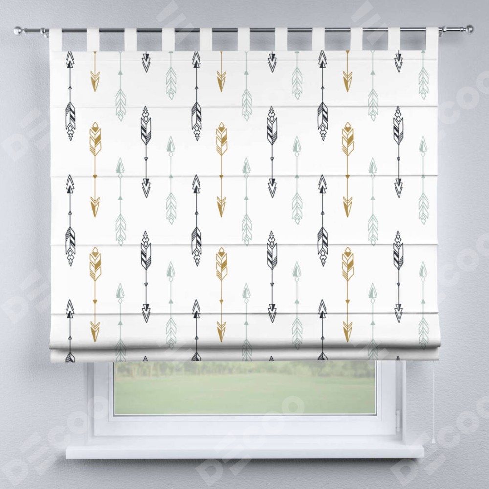Римская штора производителя «Cortin», используется для проёма, пошита из ткани блэкаут с нанесением сублимационной печати «Любимые стрелки». Данная модель пошита на петлях, комплектуется на выбор круглым карнизом и подходит для монтажа на стену. Римская штора на петлях имеет простую систему регулировки высоты, отличительным преимуществом данной модели является простой способ монтажа. Достаточно повесить ее на трубу и штора готова!
