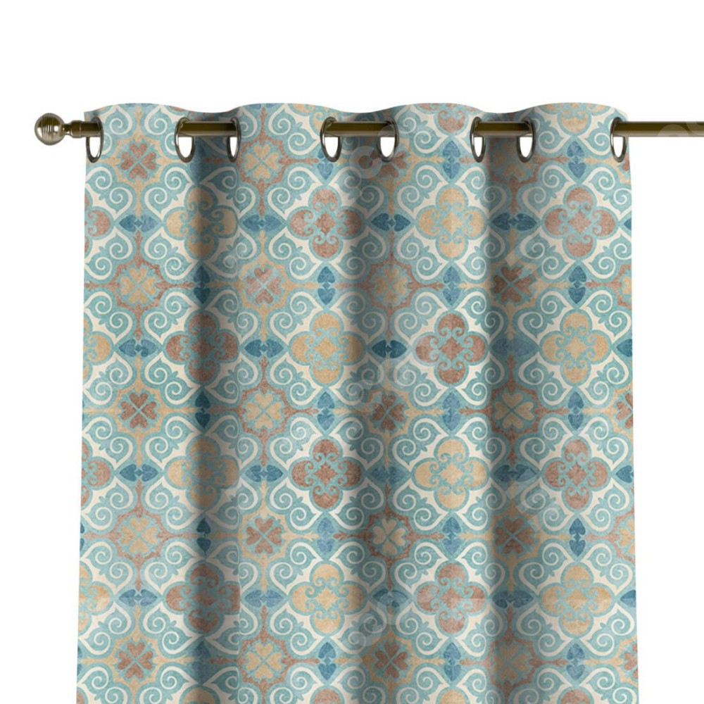 Комплект прямых штор, от производителя «Cortin», пошиты из ткани блэкаут с нанесением сублимационной печати «Фарида». Данная модель пошита на люверсах, комплектуется на выбор круглым карнизом и подходит для монтажа на стену или потолок. Прямые шторы на люверсах шьются по стандарту с коэффициентом 1/2 (на 100 см. ширины проёма 200 см. ширины ткани), отличительным преимуществом данной модели является простой способ монтажа. Достаточно повесить ее на трубу и штора готова!
