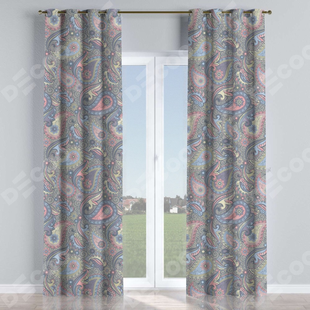 Комплект прямых штор, от производителя «Cortin», пошиты из ткани блэкаут с нанесением сублимационной печати «Цветной пейсли». Данная модель пошита на люверсах, комплектуется на выбор круглым карнизом и подходит для монтажа на стену или потолок. Прямые шторы на люверсах шьются по стандарту с коэффициентом 1/2 (на 100 см. ширины проёма 200 см. ширины ткани), отличительным преимуществом данной модели является простой способ монтажа. Достаточно повесить ее на трубу и штора готова!