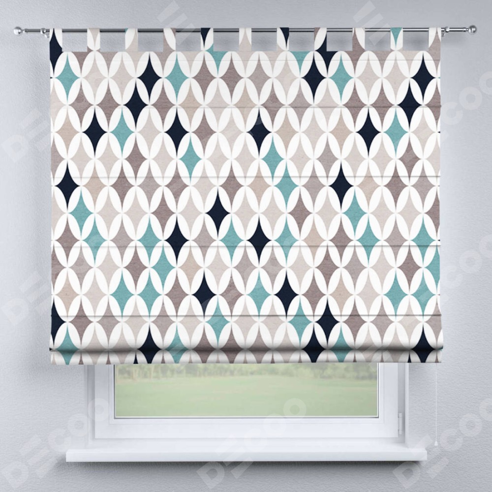 Римская штора производителя «Cortin», используется для проёма, пошита из ткани блэкаут с нанесением сублимационной печати «Орнамент кристалл». Данная модель пошита на петлях, комплектуется на выбор круглым карнизом и подходит для монтажа на стену. Римская штора на петлях имеет простую систему регулировки высоты, отличительным преимуществом данной модели является простой способ монтажа. Достаточно повесить ее на трубу и штора готова!