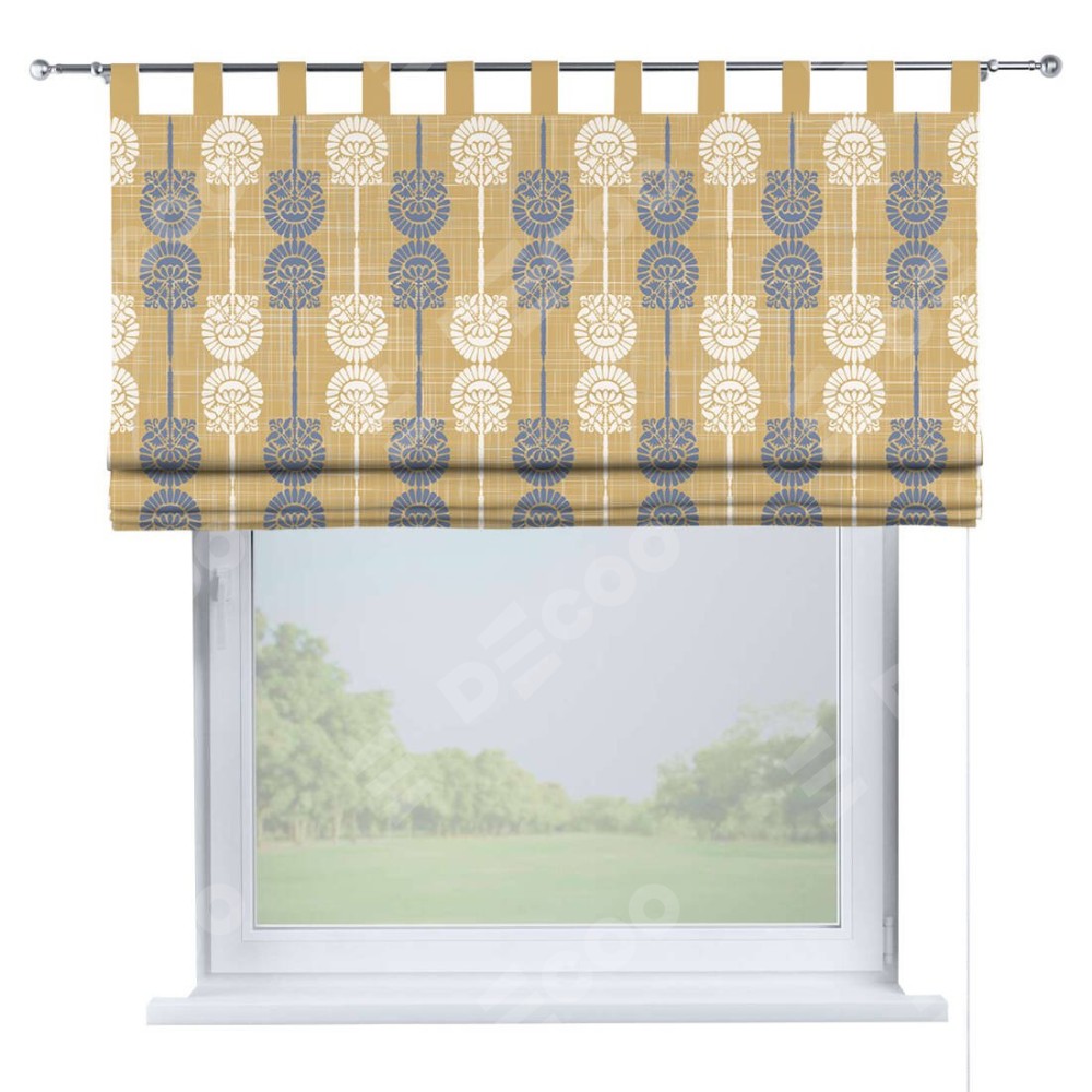 Римская штора производителя «Cortin», используется для проёма, пошита из ткани блэкаут с нанесением сублимационной печати «Венок из ромашки». Данная модель пошита на петлях, комплектуется на выбор круглым карнизом и подходит для монтажа на стену. Римская штора на петлях имеет простую систему регулировки высоты, отличительным преимуществом данной модели является простой способ монтажа. Достаточно повесить ее на трубу и штора готова!