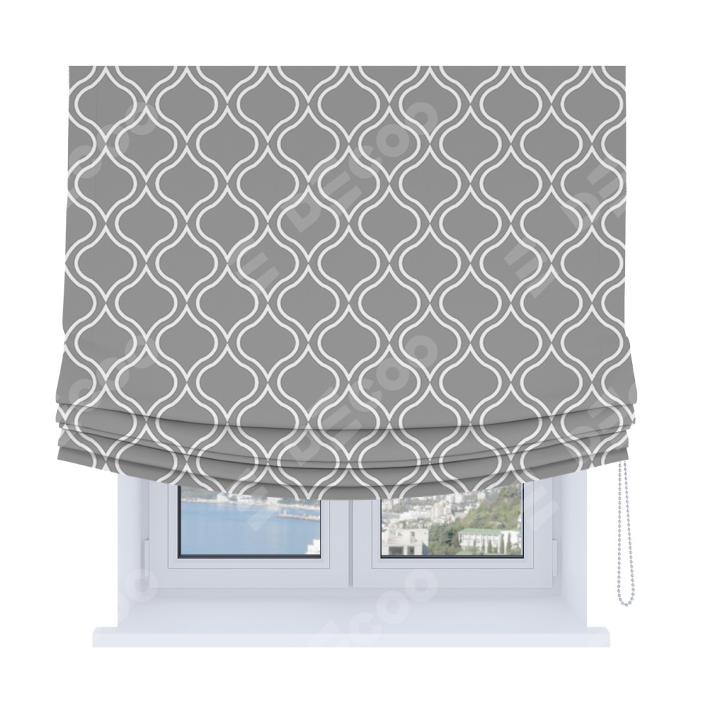 Римская штора Soft производителя «Cortin», используется для проёма, пошита из ткани блэкаут с нанесением сублимационной печати «Тайны востока серый». Имеет универсальный механизм и подходит для монтажа: на потолок, на стену и в нишу. В отличие от стандартных римских штор, римская штора Soft не имеет горизонтальных вставок и нижнего отвеса. Это позволяет ткани произвольно драпироваться в свободные мягкие складки.