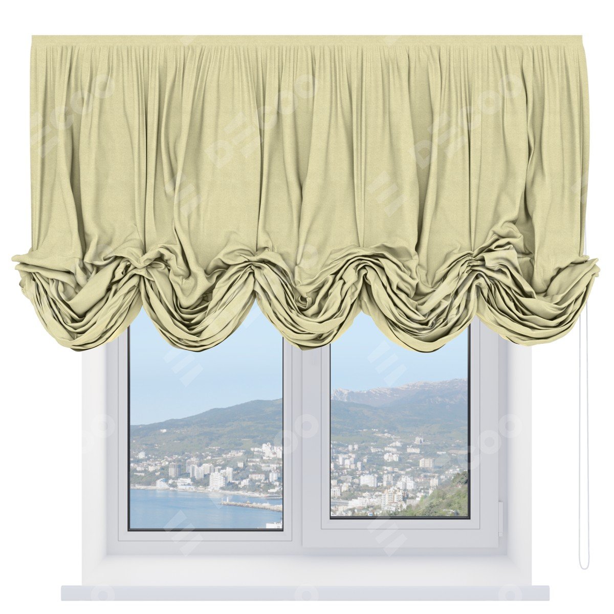 Австрийская штора производителя «Cortin», используется для проёма, пошита из ткани софт однотонный молочный, артикул ткани 11938. Имеет универсальный механизм и подходит для монтажа: на потолок и на стену.
