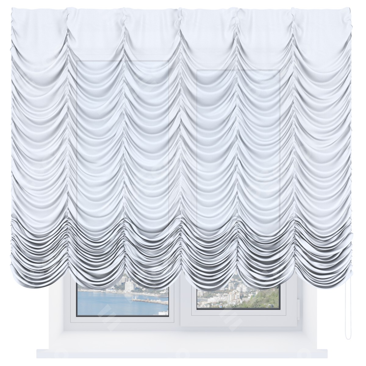 Французская штора производителя «Cortin», используется для проёма, пошита из ткани лён белый, артикул ткани 7439. Имеет универсальный механизм и подходит для монтажа: на потолок и на стену.