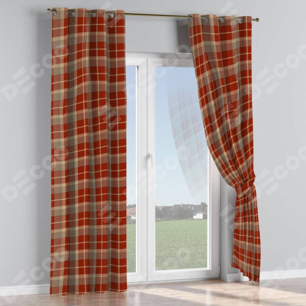Комплект штор на люверсах «Бежево-бордовая клетка»