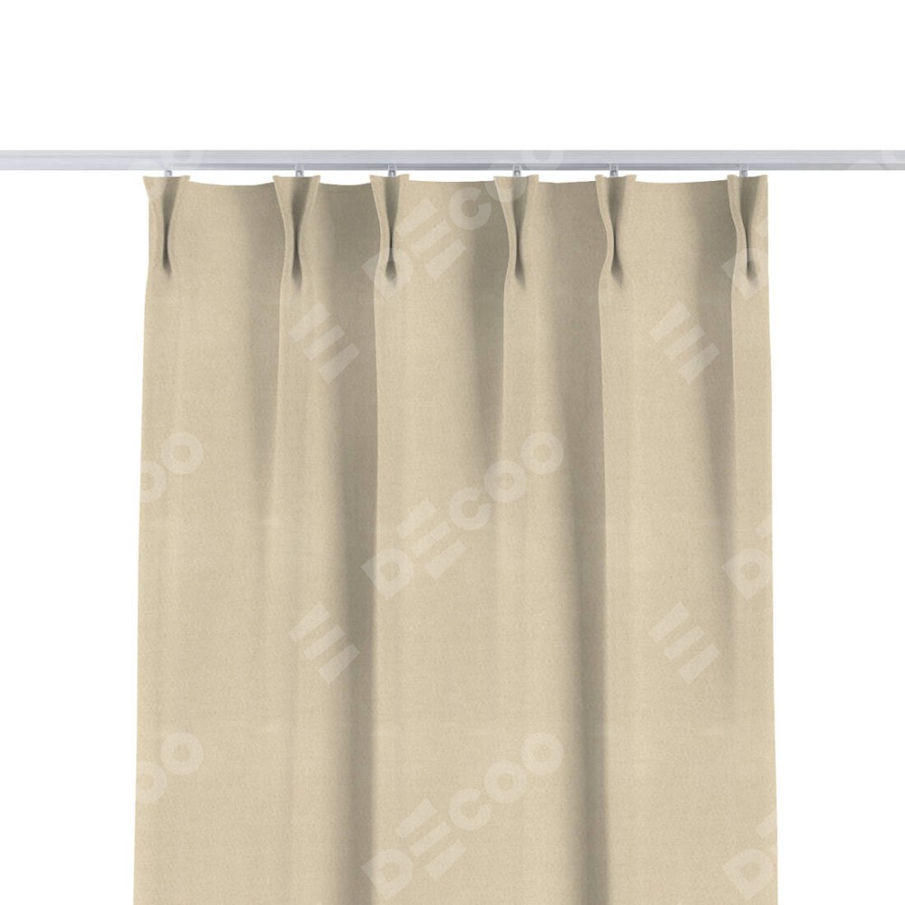 Комплект прямых штор, от производителя «Cortin», пошиты из ткани блэкаут однотонный бежевый, артикул ткани 13125. С изнаночной стороны в верхней части штор пристрачивается шторная лента с декоративными складками «Кустик». Для создания элегантных складок прямые шторы шьются по стандарту с коэффициентом 1:2 (на 100 см. ширины проёма 200 см. ширины ткани).