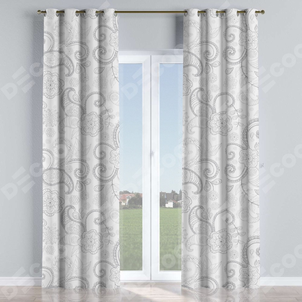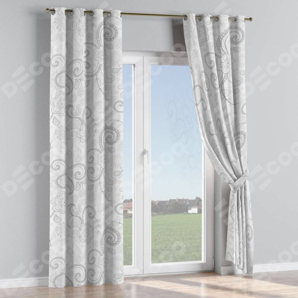Комплект прямых штор, от производителя «Cortin», пошиты из ткани блэкаут с нанесением сублимационной печати «Изысканный пейсли». Данная модель пошита на люверсах, комплектуется на выбор круглым карнизом и подходит для монтажа на стену или потолок. Прямые шторы на люверсах шьются по стандарту с коэффициентом 1/2 (на 100 см. ширины проёма 200 см. ширины ткани), отличительным преимуществом данной модели является простой способ монтажа. Достаточно повесить ее на трубу и штора готова!